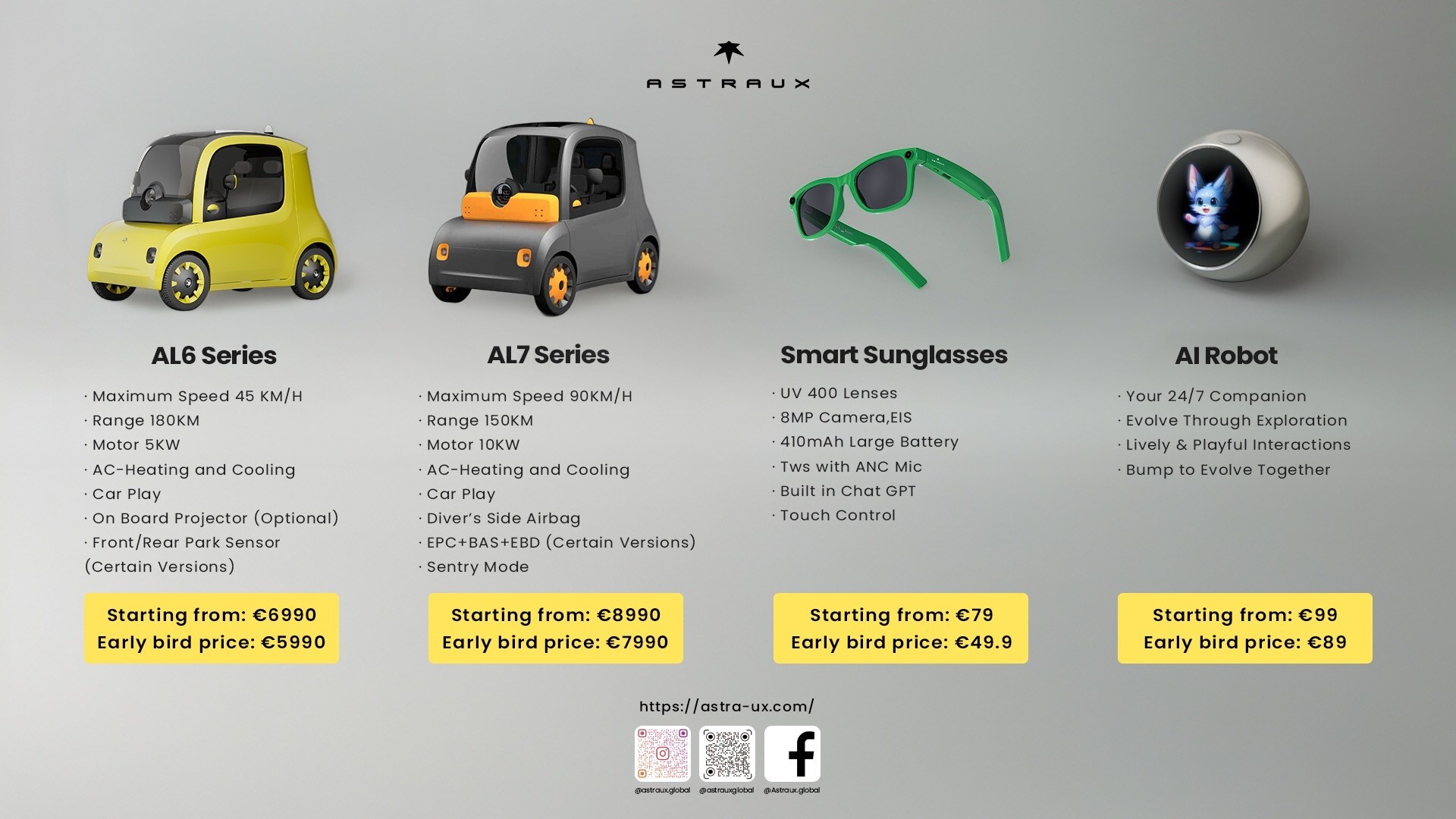 Помимо электромобиля, компания представила робота-компаньона Aimon с искусственным интеллектом. Устройство реагирует на прикосновения, движения и эмоции пользователя, способно вести осмысленные диалоги и создавать сюрпризы при взаимодействии с другими гаджетами. Завершает тройку новинок умные очки Astraux Smart Glasses за 79 евро с поддержкой ChatGPT, функцией перевода в реальном времени и 8-мегапиксельной камерой.