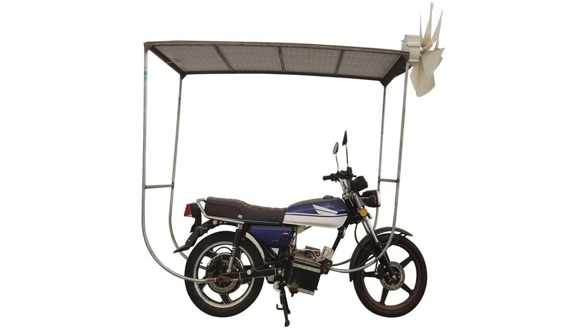 На первый взгляд CG — это переделанный Honda CG125, в который вставили литий-фосфатную батарею на 30 Ач и электромотор мощностью 1500 Вт. Но главное — не внутри, а сверху: крыша с солнечными панелями на 250 Вт и ветряная турбина, гордо торчащая над водителем. Не самый изящный дизайн, прямо скажем, но в данном случае, похоже, красота — дело десятое.