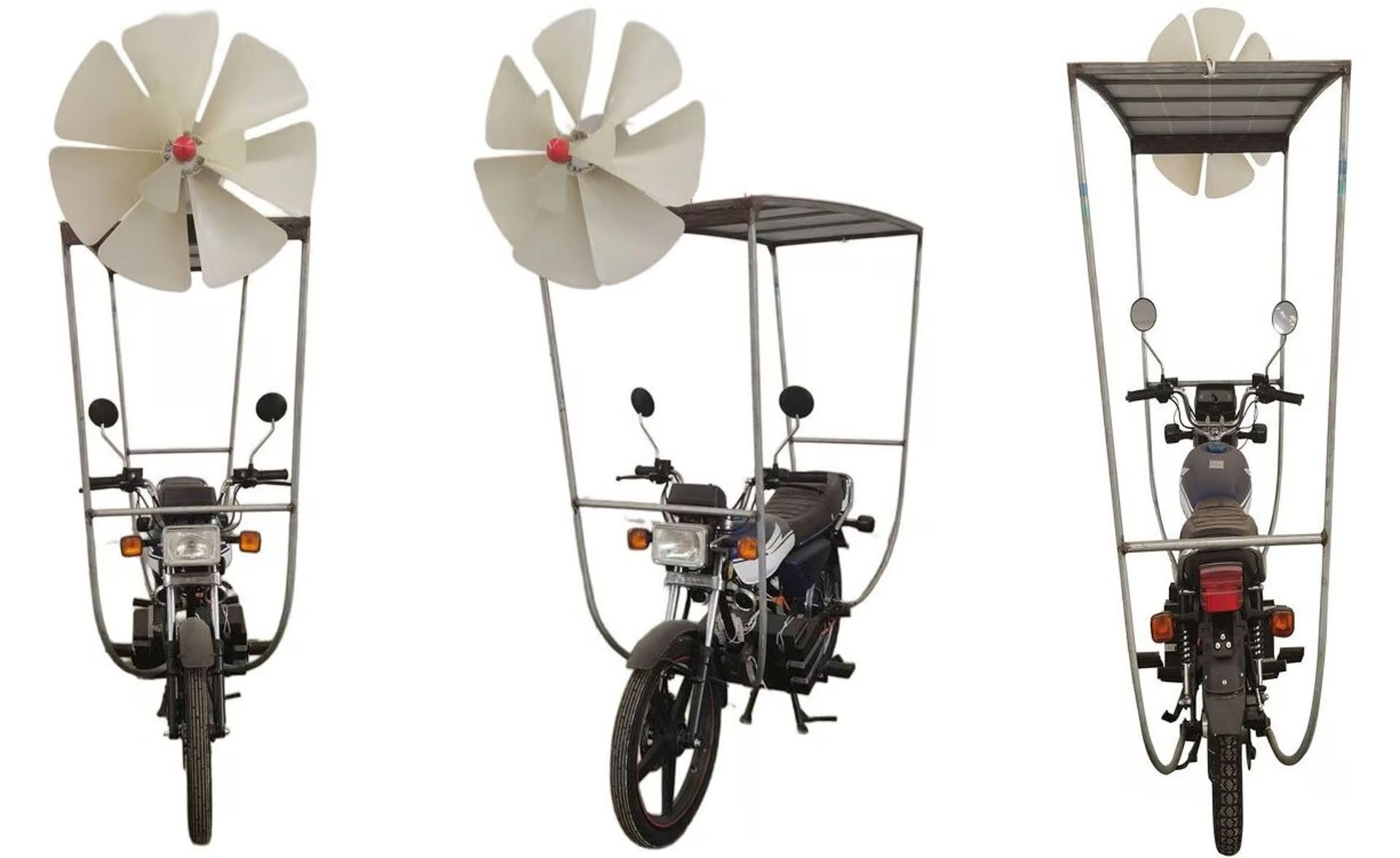 Кроме CG, у YongLE Risheng есть ещё более диковинные штуки: солнечные лодки, мини-электрокары и даже гольф-кары на природной тяге. А есть ещё Fengchi160 — гибрид мотоцикла, грузовой платформы и трицикла, с солнечной панелью и двумя (!) турбинами на крыше.