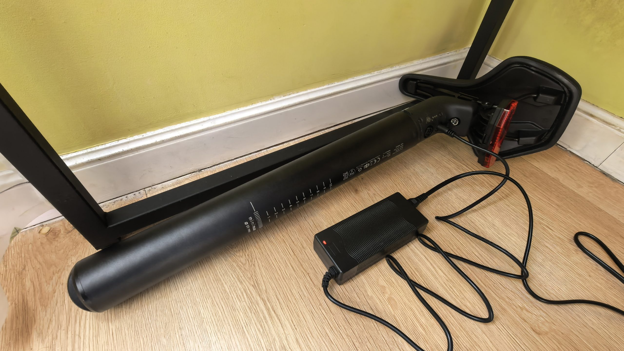 С дорожными свойствами и ощущениями от поездки на ADO A20S Air может сравниться разве что его удобство в обслуживании. Ранее мы отмечали, что батарея встроена в стойку седла. С первого взгляда может показаться, что это немного странное решение, но все куда проще и практичнее. Дело в том, что батарею можно легко извлечь и заряжать отдельно от самого велосипеда.