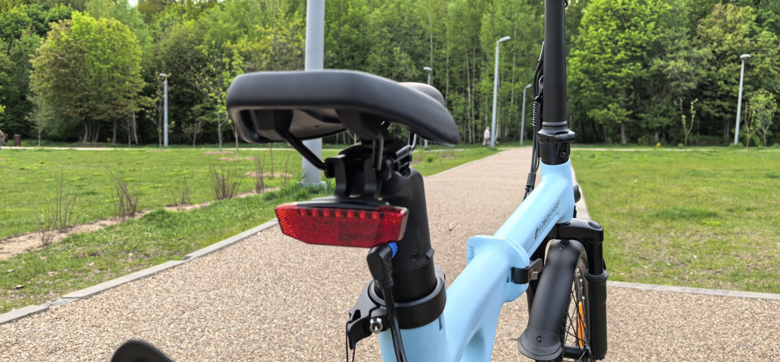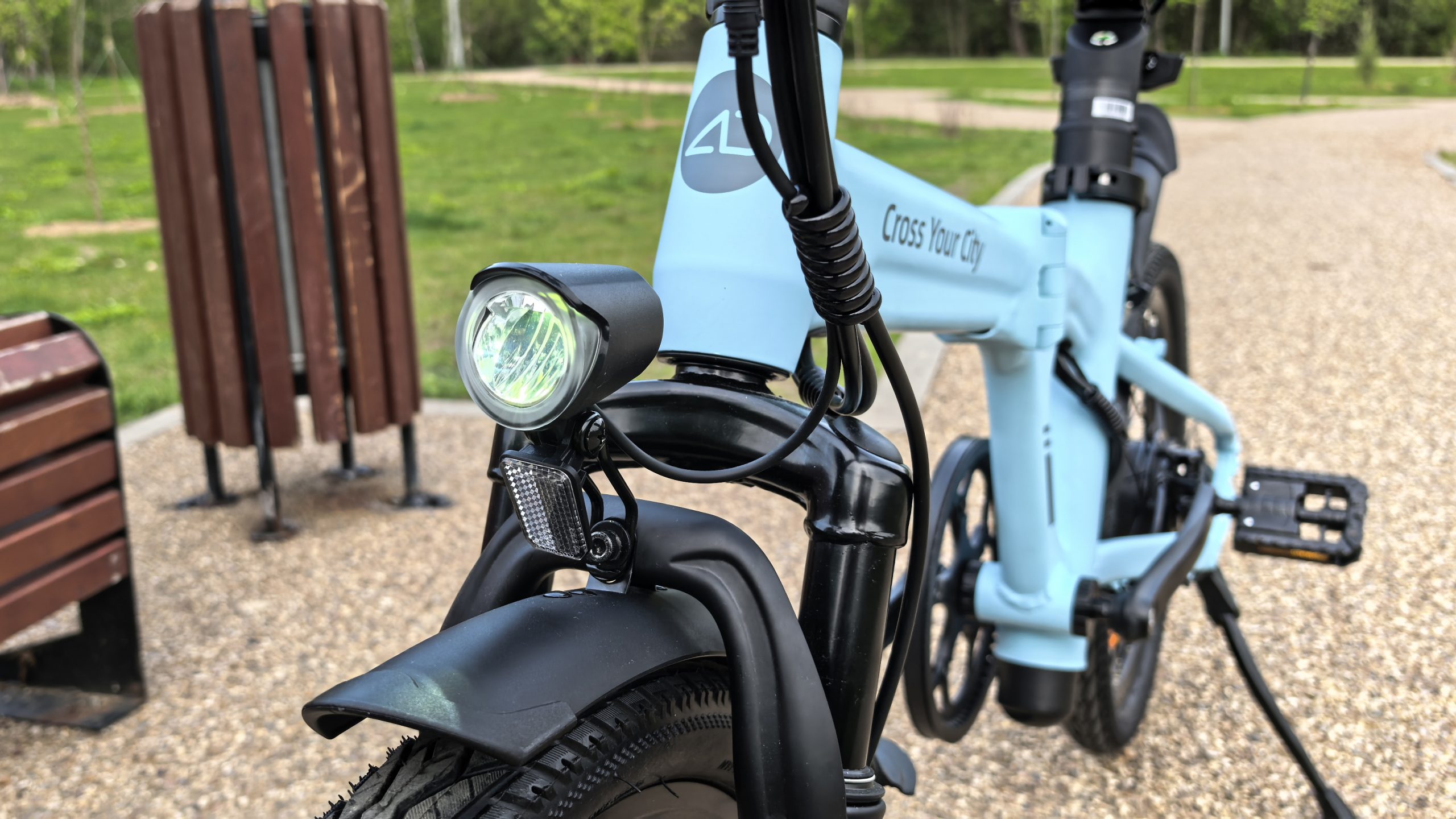 К комплектации можем еще отнести передний фонарик с небольшой светоотражающей площадкой, крупный задний светоотражатель с собственным светом, а также катафоты на обоих колесах. Вроде бы это и мелочи, но для безопасной езды в темное время суток они критически необходимы. Фонарик, кстати, достаточно яркий и с грамотным рассеиванием: вы действительно лучше видите дорогу, а не просто получаете пятно света на асфальте впереди себя.