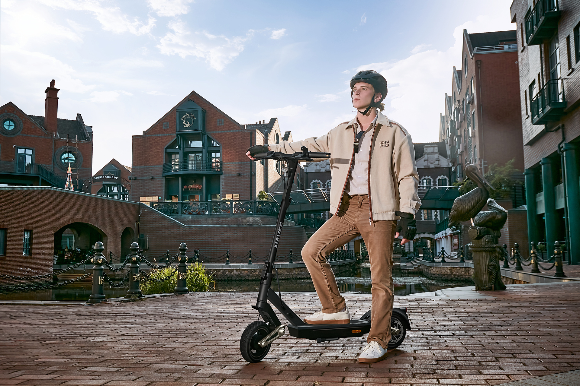 Флагман получил мотор на 1350 Вт, легко справляется с подъёмами до 28%, а плавность хода обеспечивает четырёхрычажная подвеска, разработанная на основе системы Damping Arm™. За устойчивость отвечают система антизаноса TCS, тройная тормозная система (включая EABS) и рекуперация энергии, которая помогает выжать максимум из одного заряда.