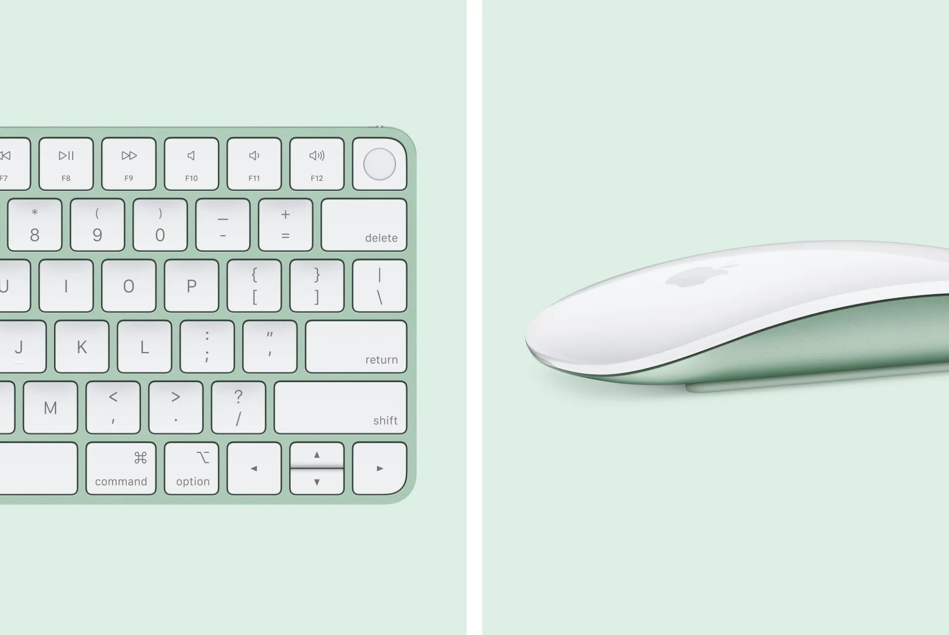 Новый iMac доступен в семи ярких цветах, с клавиатурой и мышью Magic Keyboard и Magic Mouse или, по желанию, трекпадом Magic Trackpad с портом USB-C, заменившим предыдущий Lightning. Компьютер изготовлен из перерабатываемых материалов, не содержит ртути, бромированных антипиренов и ПВХ, а упаковка выполнена без использования пластика.