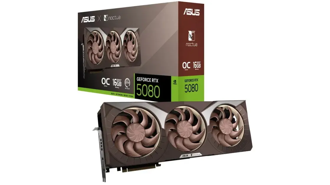 Asus раскрыла детали о совместной с Noctua видеокарте GeForce RTX 5080, которая впервые была показана на Computex 2025. Главная фишка новинки — система охлаждения с тремя 120-мм вентиляторами вместо привычных двух, что должно обеспечить исключительно тихую работу даже под нагрузкой.