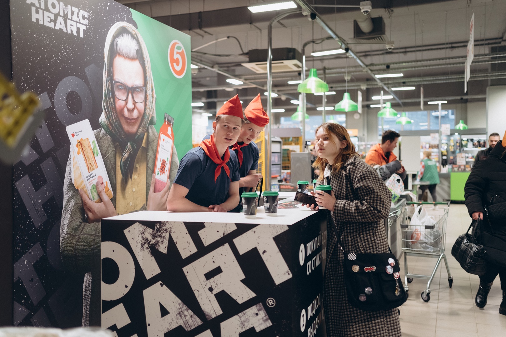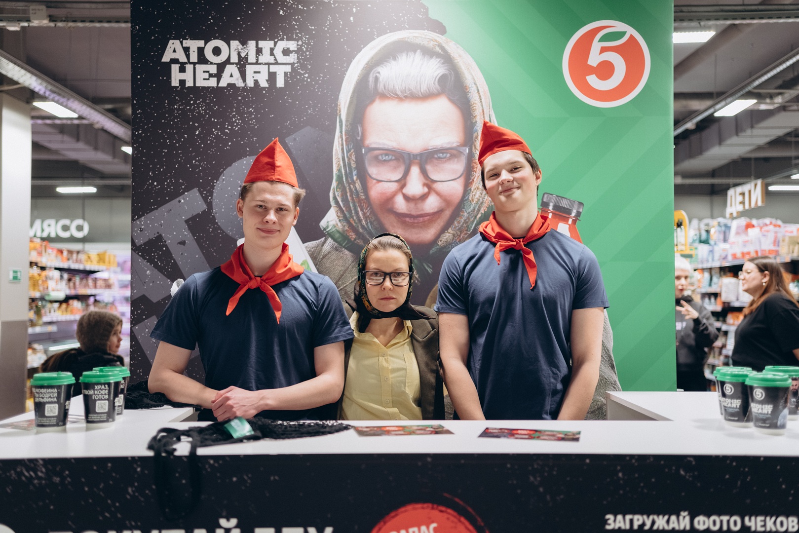 Запуск акции «Пятёрочка» отметила тематическим ивентом, который собрал сотни фанатов. Магазин превратился в зону киберпанка с фотозоной, аниматорами в костюмах героев Atomic Heart и первыми счастливчиками, получившими редкие призы и новое дополнение к игре.