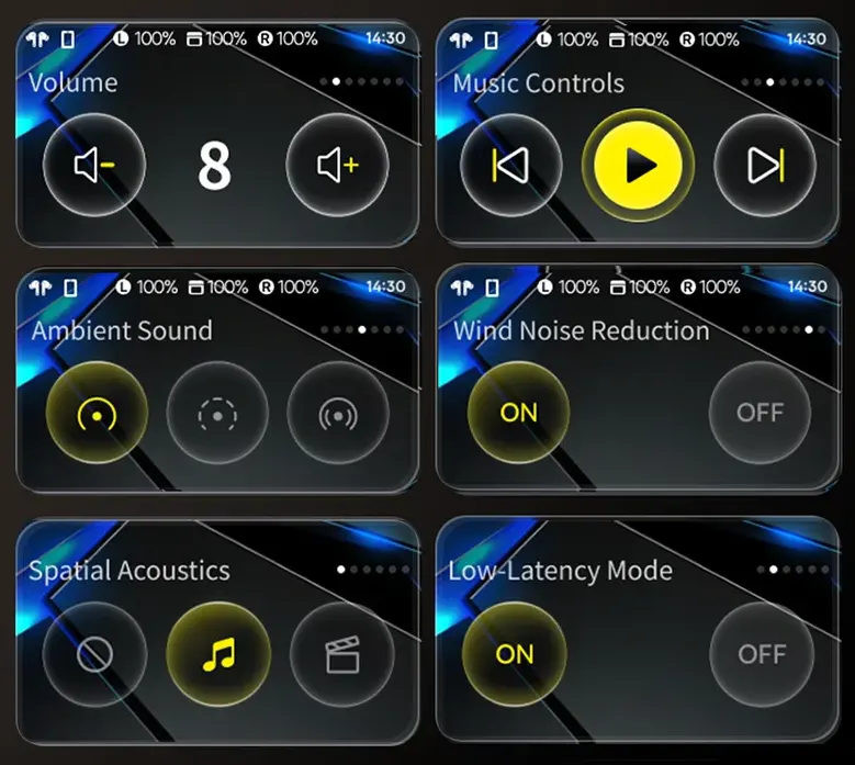 Одно из самых нестандартных и крутых решений — это сенсорный дисплей прямо на зарядном кейсе. С его помощью можно не только управлять воспроизведением, регулировать громкость и включать шумодав, но и настраивать звук с помощью 12 предустановленных эквалайзеров, переключаться между режимами и даже искать потерянные наушники. Это действительно удобно — особенно в ситуациях, когда не хочется доставать смартфон.