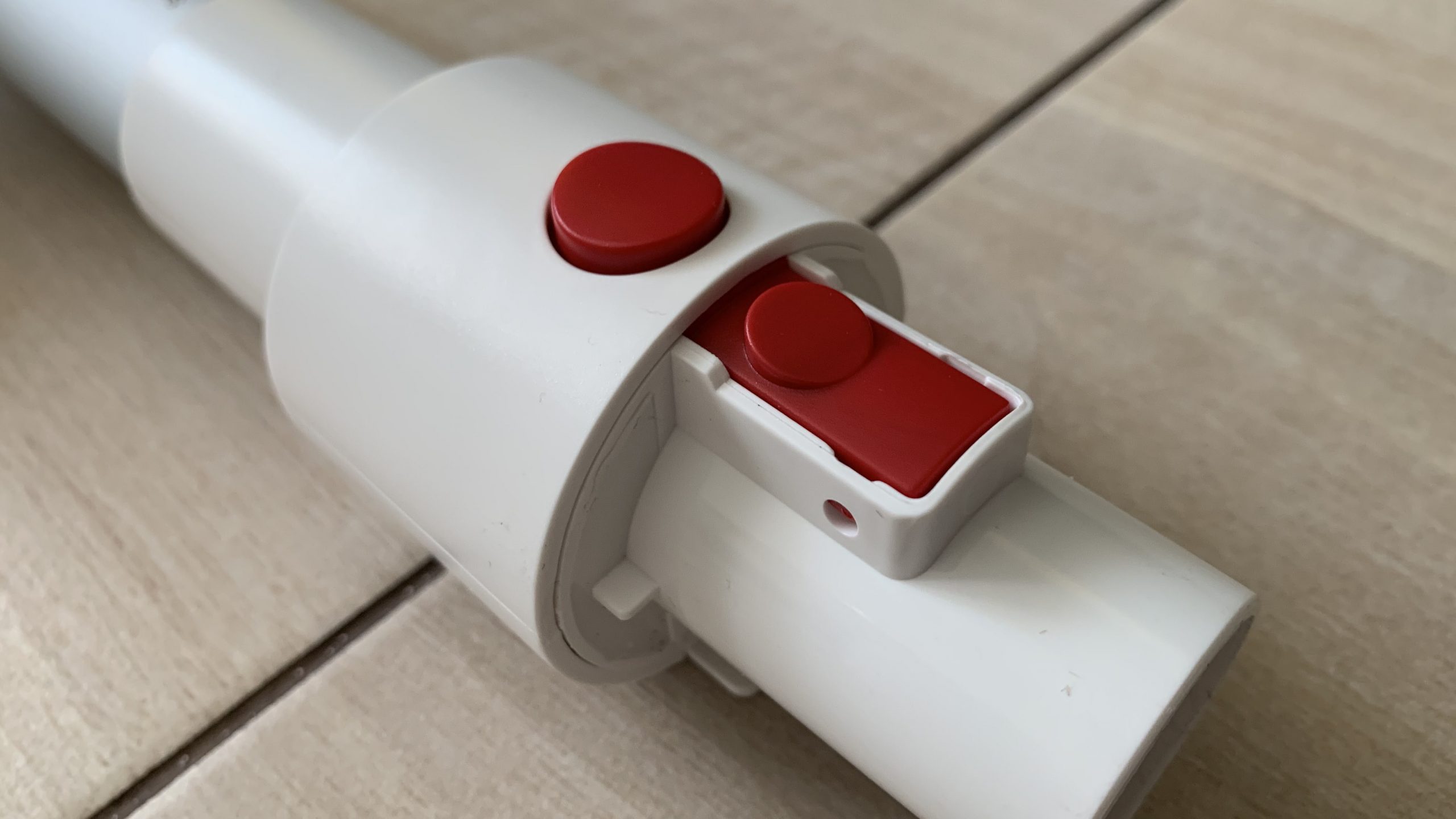 Датчик заряда аккумулятора расположен на верхней крышке основного блока, и представляет собой четыре светодиода. Единственный элемент управления — большая круглая кнопка, вынесен на ручку устройства. Гнездо для зарядки расположено на основном блоке. К эргономике МС 20 PLUS нет никаких претензий — пылесос удобно лежит в руке, и для того, чтобы дотянуться до кнопки не нужно перехватывать устройство поудобнее.