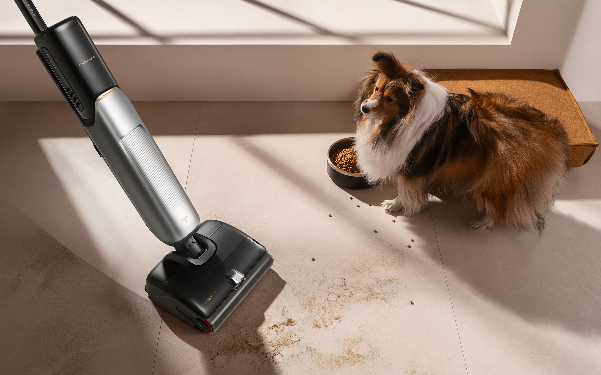 На кухне тоже нашелся пример, когда Trouver X4 Pro проявил себя на отлично. Мойка пола горячей водой помогает легко удалить жировые загрязнения. Даже если на полу остались следы масла или соуса, они быстро размягчаются и удаляются без особых усилий. Немаловажную роль в успешной очистке сыграла технология SpotHeat Spray, обеспечивающей дополнительное увлажнение участка пола горячей водой (до 80 градусов) в области перед насадкой. После такой «обработки» мягкому валику не составляет труда удалить любую грязь.