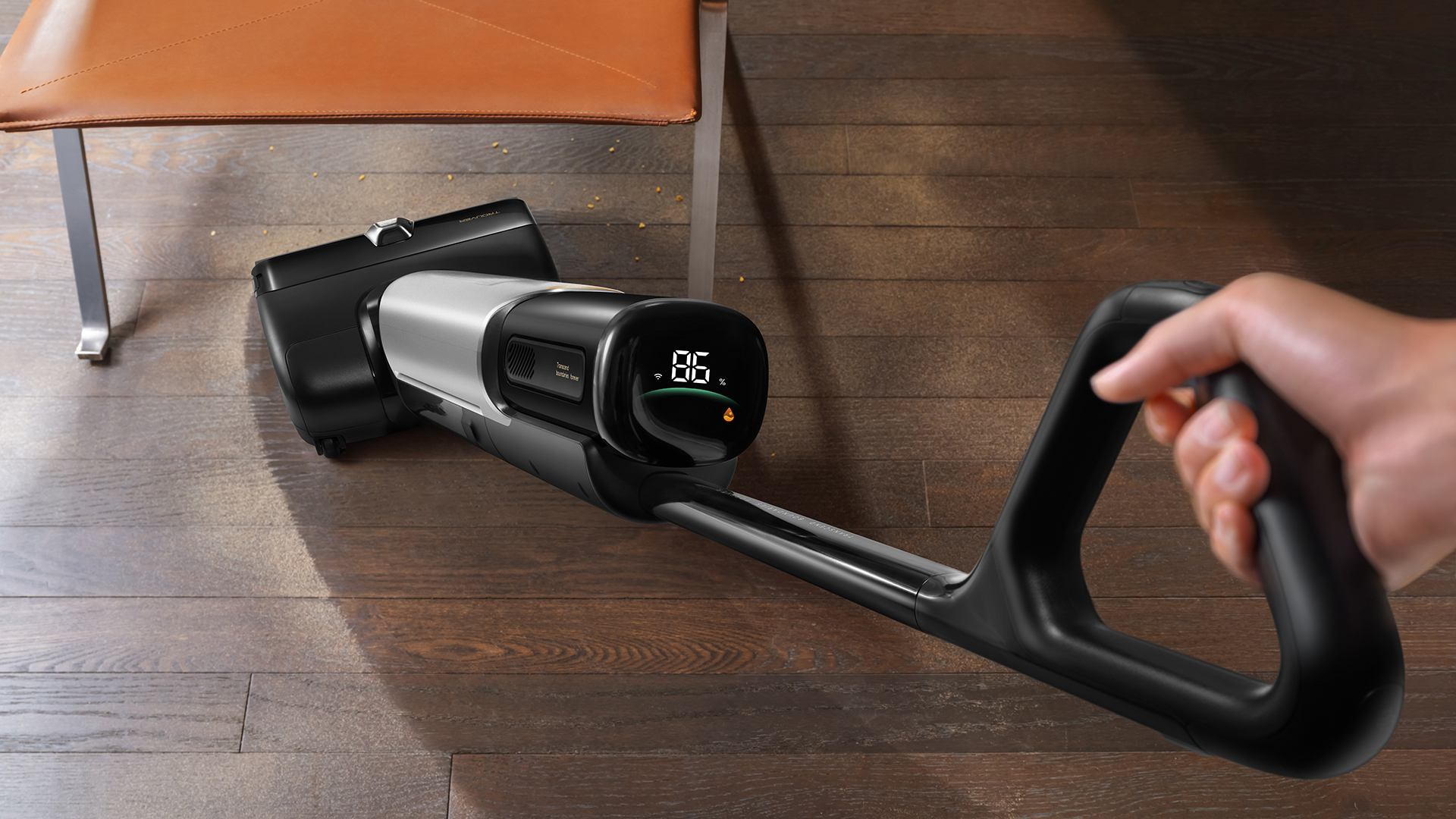 Особое внимание стоит уделить геометрии щетки. Она спроектирована так, чтобы идеально проходить вдоль плинтусов и в углах, а также легко поворачиваться на 60 градусов, позволяя дотянуться до самых неудобных мест. Наличие светодиодной подсветки на щетке — еще одно приятное дополнение, которое помогает обнаружить и собрать пыль в темных уголках.