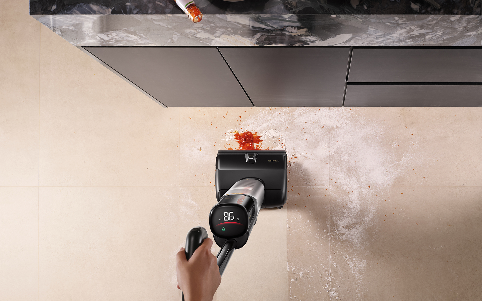Во время тестирования Trouver X4 Pro у моих друзей появилась идея провести небольшой праздник. В качестве «площадки» я решил предложить свою квартиру. После того как гости ушли, а на полу осталась куча конфетти, крошек от снеков и высохших пятен от напитков — стандартная картина. И тут Trouver X4 Pro продемонстрировал свою мощность и удобство. Мощности в 20 000 Па хватило для того, чтобы собрать даже самые мелкие частички мусора, которые легко ускользают от внимания при обычной уборке. А благодаря яркой подсветке щетки даже самые мелкие кусочки чипсов не остались незамеченными. Помогла и функция умной уборки, которая сама регулировала режим и мощность, потому что я в тот момент думал о воде и том, как быстро подействует абсорбирующие средства.