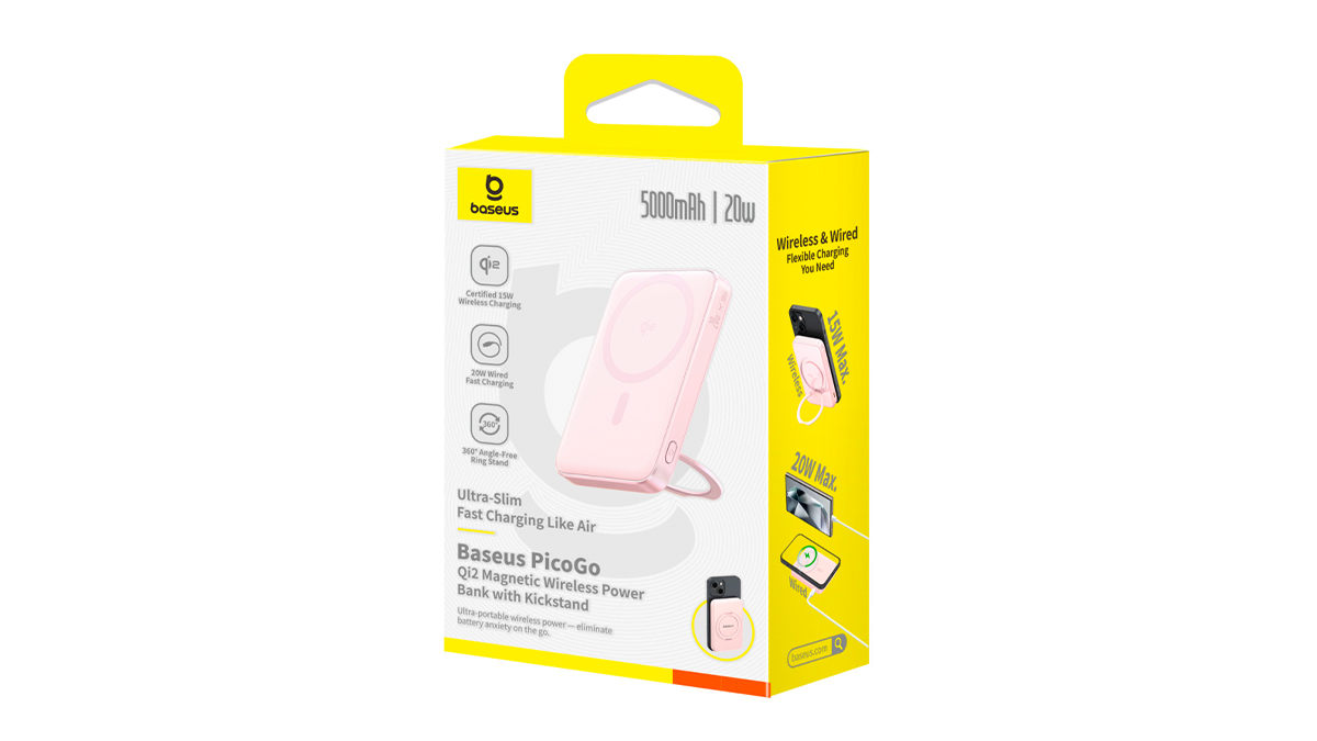 Этот ультратонкий пауэрбанк емкостью 5000 мАч поддерживает беспроводную зарядку мощностью 15 Вт по стандарту Qi2 и проводную зарядку через USB-C мощностью 20 Вт. Магнитное крепление и поворотное кольцо-держатель на 360° делают его идеальным для использования в дороге. Устройство доступно в четырех цветах, что позволяет выбрать вариант по вкусу.