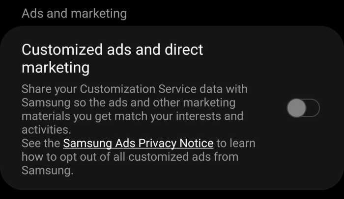 Примечательно, что ранее Samsung предлагала переключатель «»олучать маркетинговую информацию» в настройках конфиденциальности на своих устройствах, но этот переключатель исчез в более поздних версиях системы.