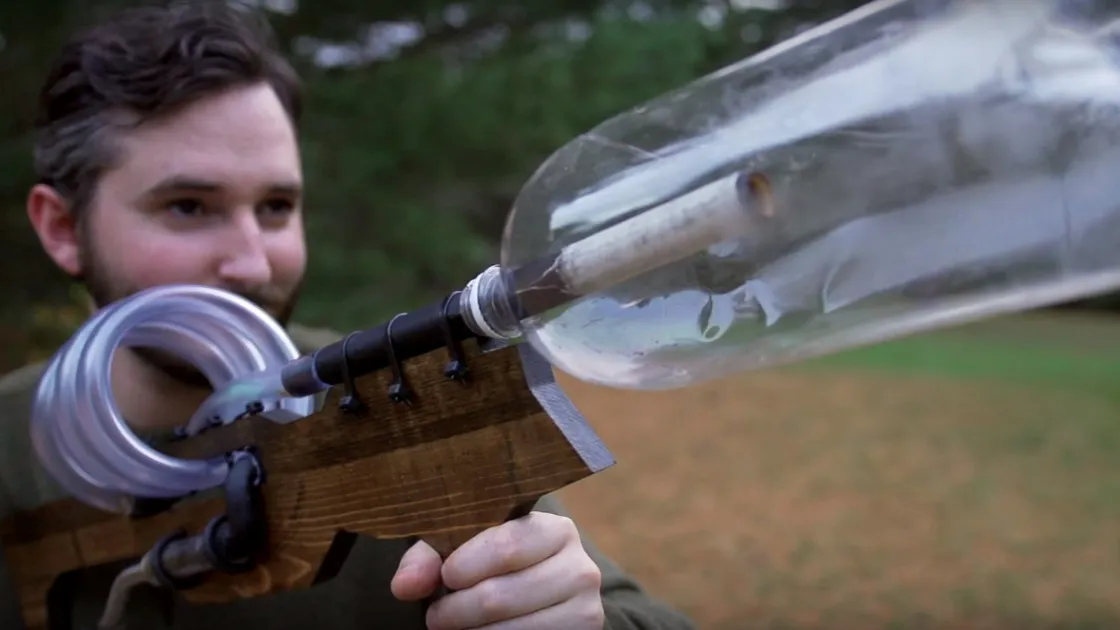 Создатель youtube-канала NightHawkInLight Бен Кьюсик продемонстрировал свое очередное творение — пропановое ружье, которое стреляет пластиковыми бутылками, и заодно наглядно показал, как его изготовить.