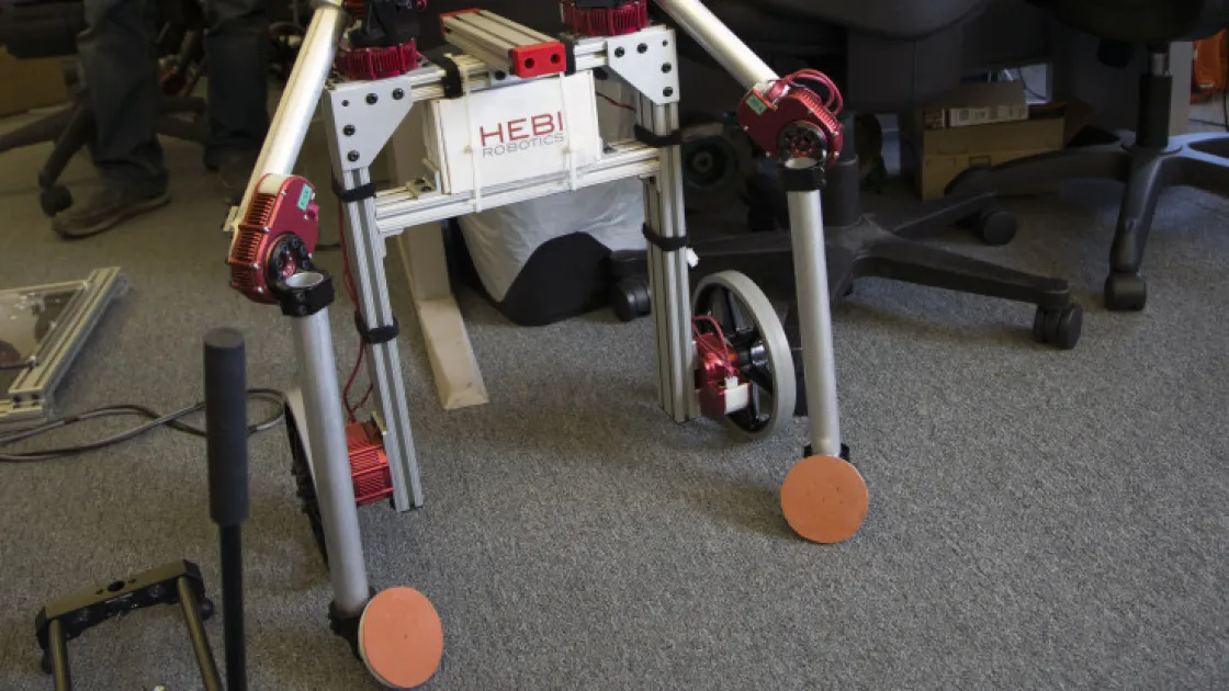 В офисе HEBI «проживает» Игорь — робот, который балансирует на двух колесах, как Segway (на фото выше). На вершине его «тела» — квадратной рамки — закреплены длинные руки. Ими робот может сжимать и подбирать предметы. Это не самый изящный робот, однако он — хороший пример того, как, используя компоненты HEBI, можно быстро собрать прототип сложного робота.