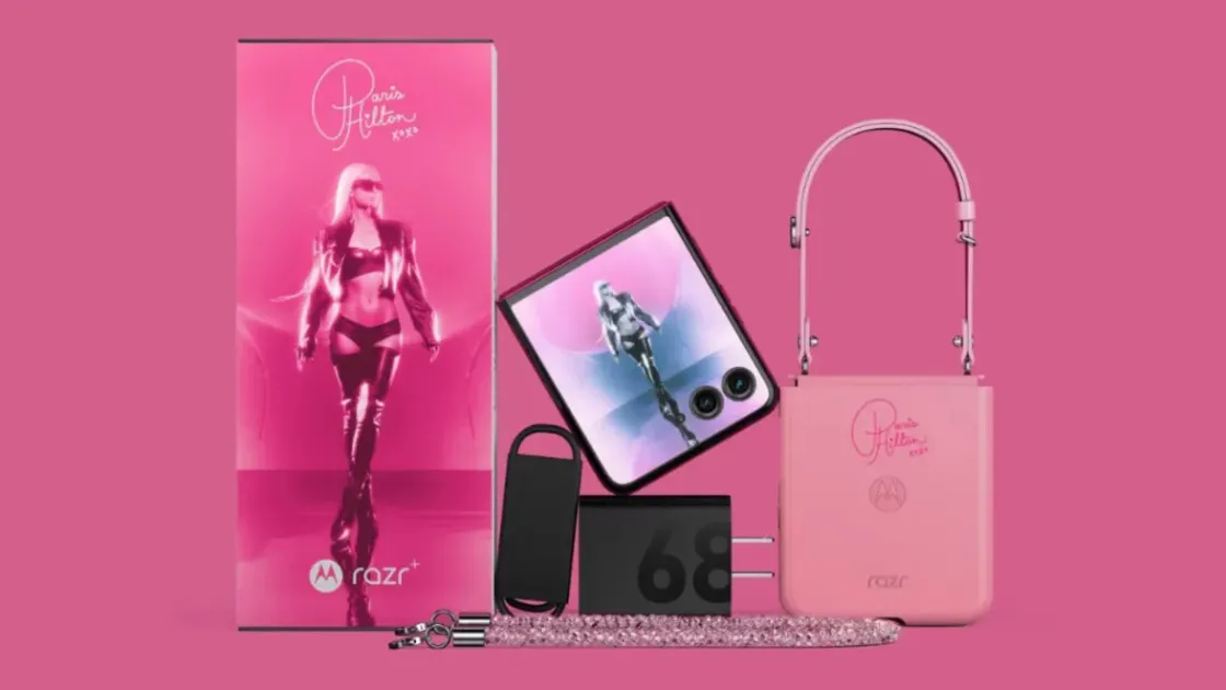 Motorola решила сыграть на ностальгии по 2000-м и выпустила эксклюзивную версию складного Razr Plus в коллаборации с Пэрис Хилтон. Смартфон выполнен в нежно-розовом цвете и дополнен чехлом из веганской кожи, стилизованным под мини-сумочку. В комплекте также идёт блестящий розовый ремешок, подчёркивающий эстетику эпохи Y2K.