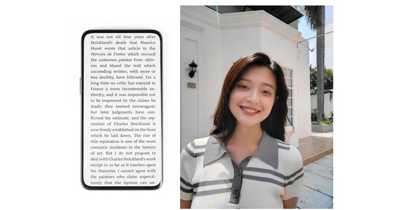Все разработки Oppo сводились к одной, достаточно простой цели — сделать камеру практически невидимой, поскольку в более ранних версиях этой технологии наблюдается явная разница в качестве экрана, когда он проходит через датчик камеры. Oppo заявляет, что эта последняя версия почти не имеет визуальных различий при повседневном использовании. На изображении ниже показан пример приложения для чтения книг, в котором сразу же будет заметна разница в качестве экрана. Заметили? Вот именно. А вот второе изображение — это фотография, сделанная на ту самую селфи-камеру.