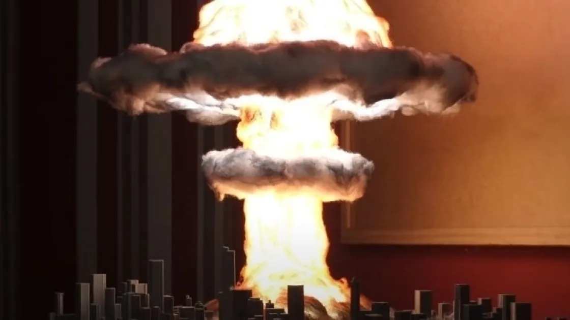 Эффектная диорама-ночник в виде сцены взрыва ядерной бомбы в центре мирного городка. Точнее даже не сам взрыв, а то самое грибовидное облако, вздымающееся в атмосферу. И для создания всего этого великолепия вам понадобится несколько светодиодов, синтепон из подушки и ещё несколько мелочей. Правда, сам город напечатан на 3D-принтере, он его можно заменить на картонной моделью.