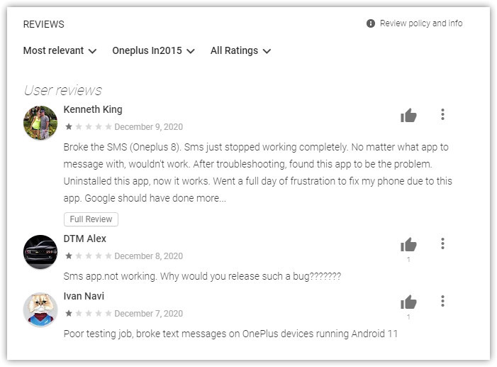 В течении последней недели пользователи форумов OnePlus сообщают о серьезных проблемах с текстовыми SMS-сообщениями при установке приложения. По какой-то причине удаление приложения, похоже, полностью решает проблему. Аналогичные сообщения об ошибках появлялись в и отзывах о приложении в Play Store.