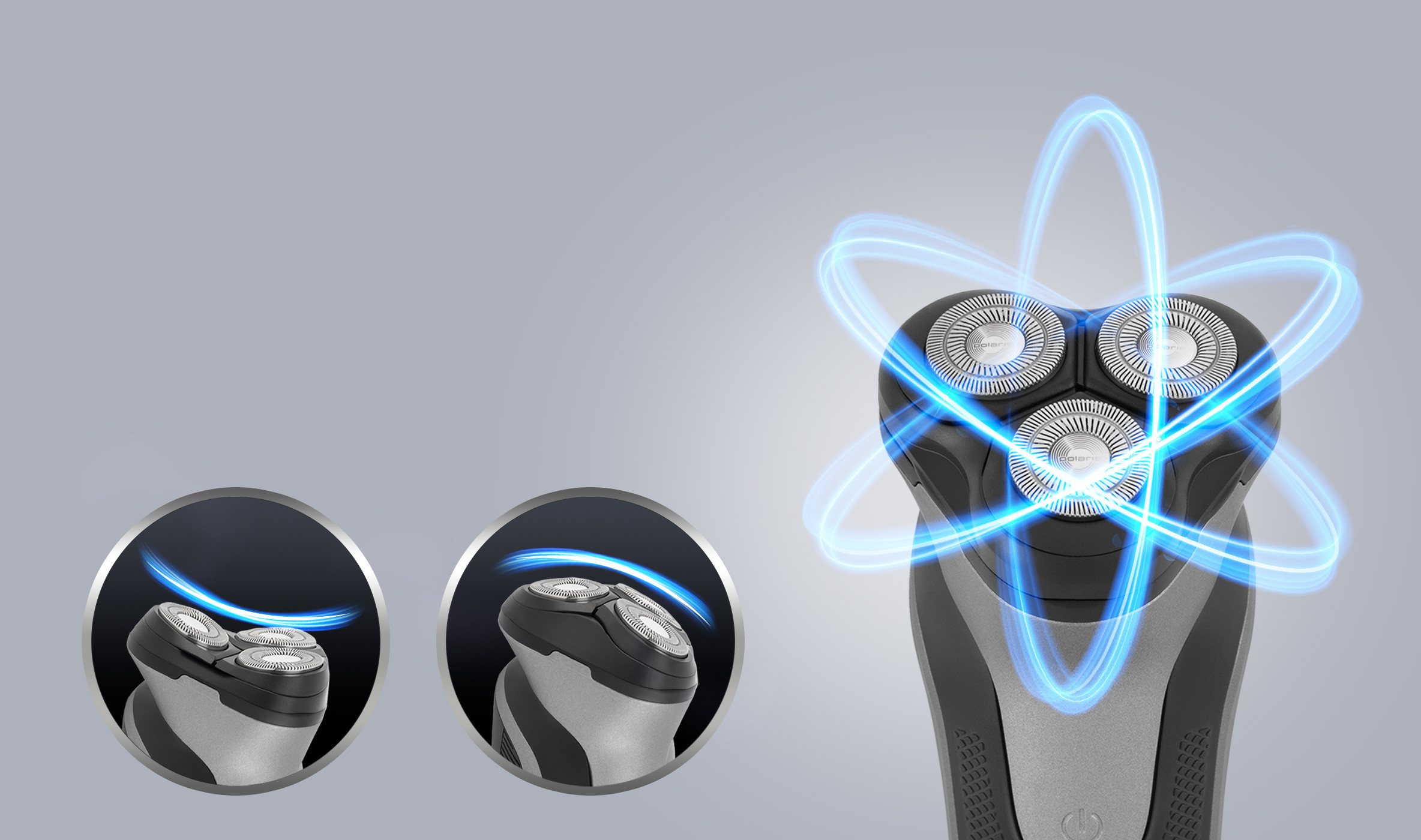 Три плавающие роторные головки включают 54 самозатачивающихся острых лезвия, которые обеспечивают отличное скольжение и способны брить даже самые короткие волоски в труднодоступных местах. Эта технология называется flex&float.