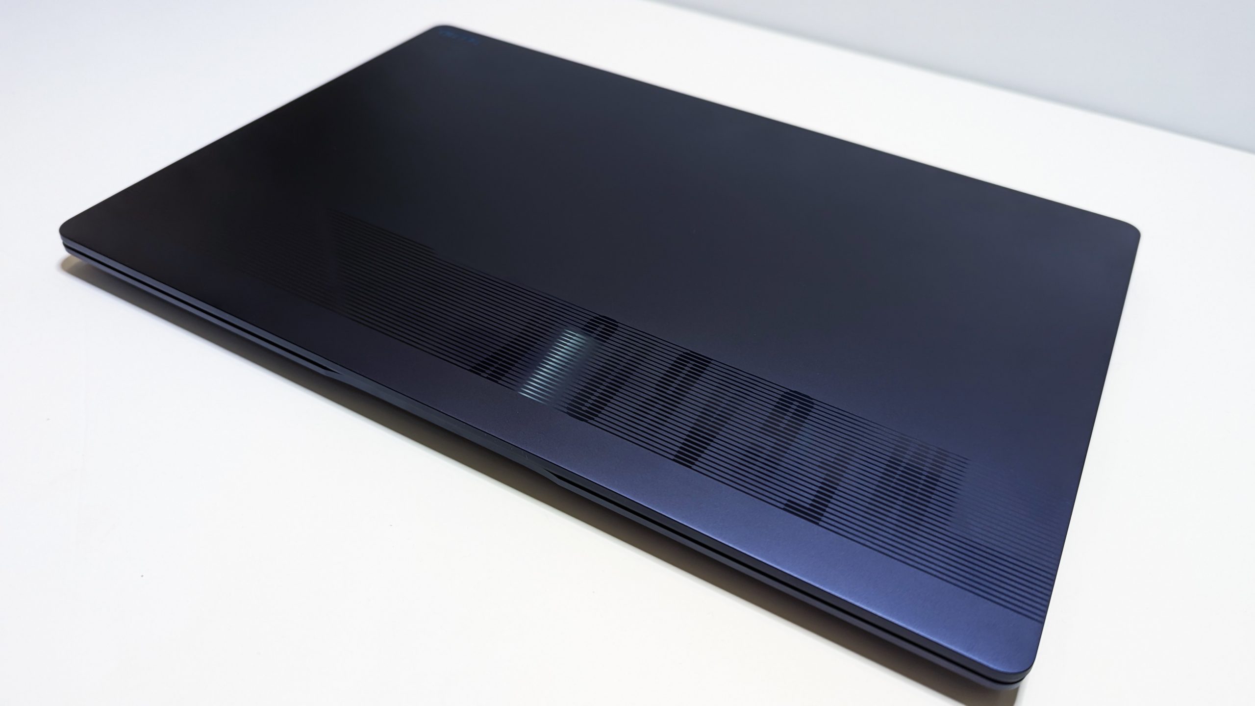 Внутри яркой коробки скрывается аппарат сдержанный, но не лишенный своего шарма. Простые прямые линии корпуса и приятный металл сочетаются с горизонтальными полосами на верхней крышке, в которых и спрятано название ноутбука. Визуально и тактильно ноутбук приятный. Общий язык дизайна схож с лидирующими в нише устройствами, и о его универсальности лишний раз говорить не будем. Отметим, что в исполнении TECNO он удался. Несмотря на схожесть с тем же MacBook, здесь чувствуется какая-то самобытность и индивидуальность.