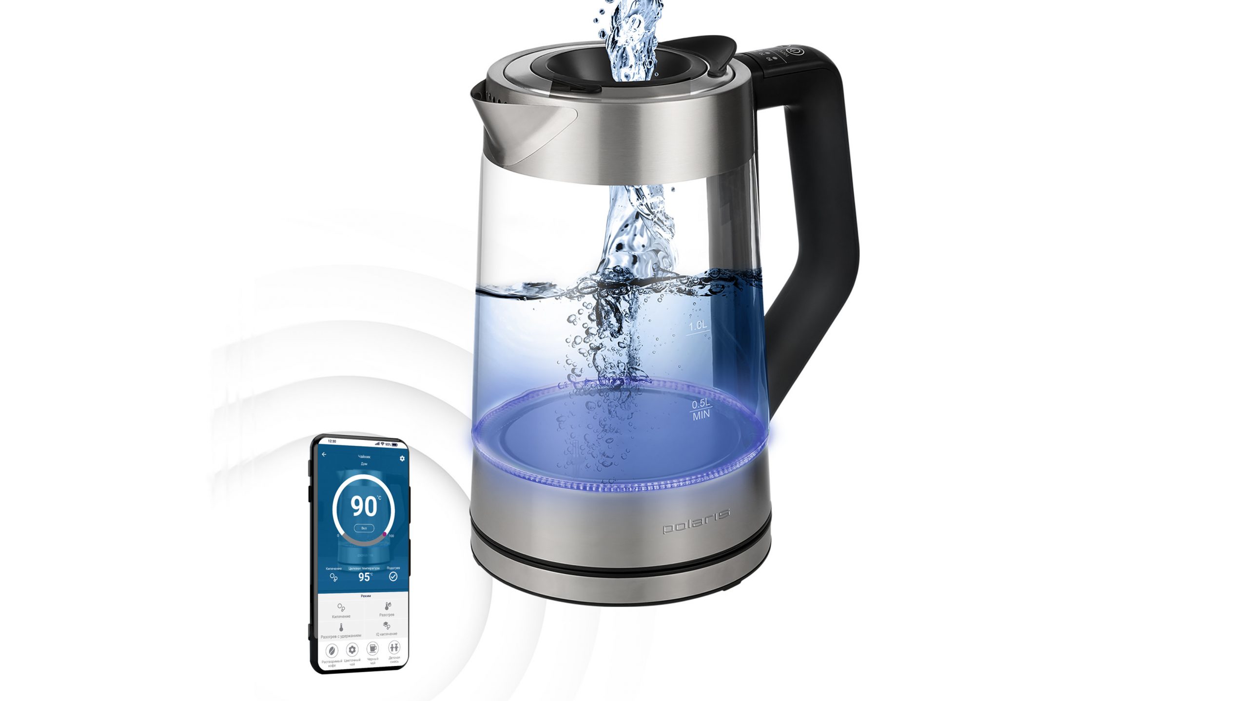 Дополнительно, прибор можно подключить к домашней сети Wi-Fi и управлять им с помощью мобильного приложения Polaris, доступного на Android и iOS. С помощью этого приложения пользователь может не только управлять чайником, но и задать ему собственное имя, указать местоположение в помещении. Приложение позволяет видеть текущую температуру воды в чайнике и выбранный режим работы, а также предоставляет доступ к различным функциям, таким как кипячение, разогрев с удержанием, IQ-кипячение и предустановленные режимы для различных напитков.