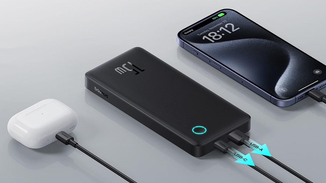 Baseus Airpow Lite способен на кое-что еще — заряжать одновременно два устройства. Повербанк без проблем справился с зарядкой смартфона через USB-C и беспроводных наушников через USB-A. Однако при этом скорость зарядки снизилась до 10 Вт, что нужно учитывать, если вы планируете заряжать сразу два гаджета.