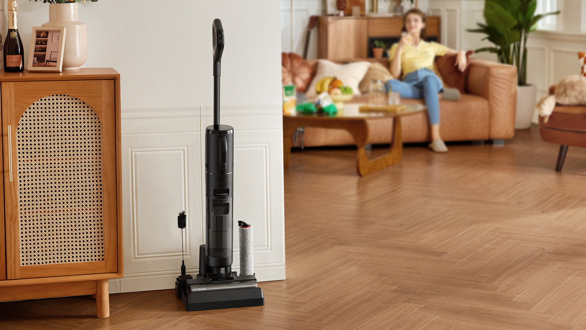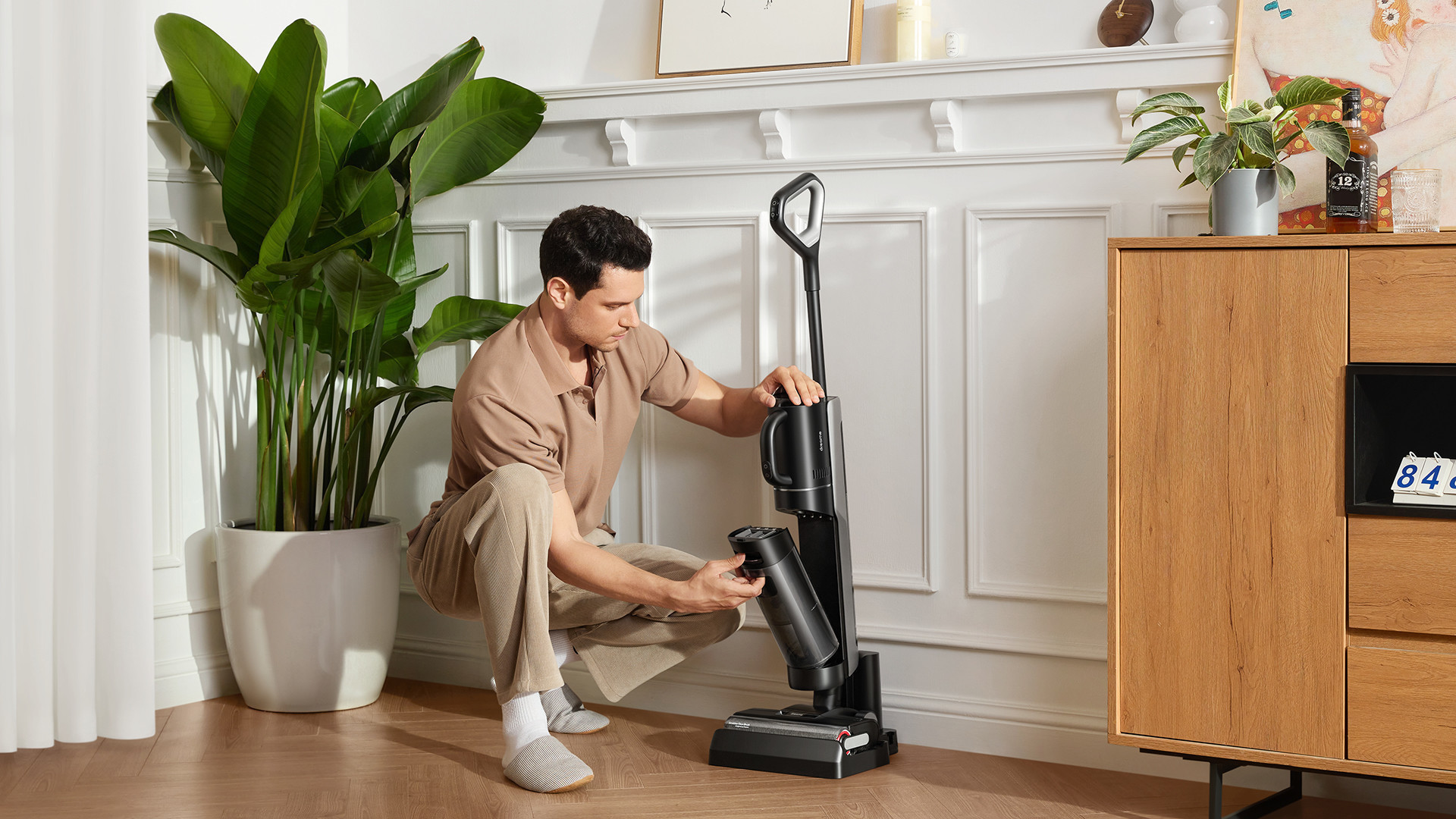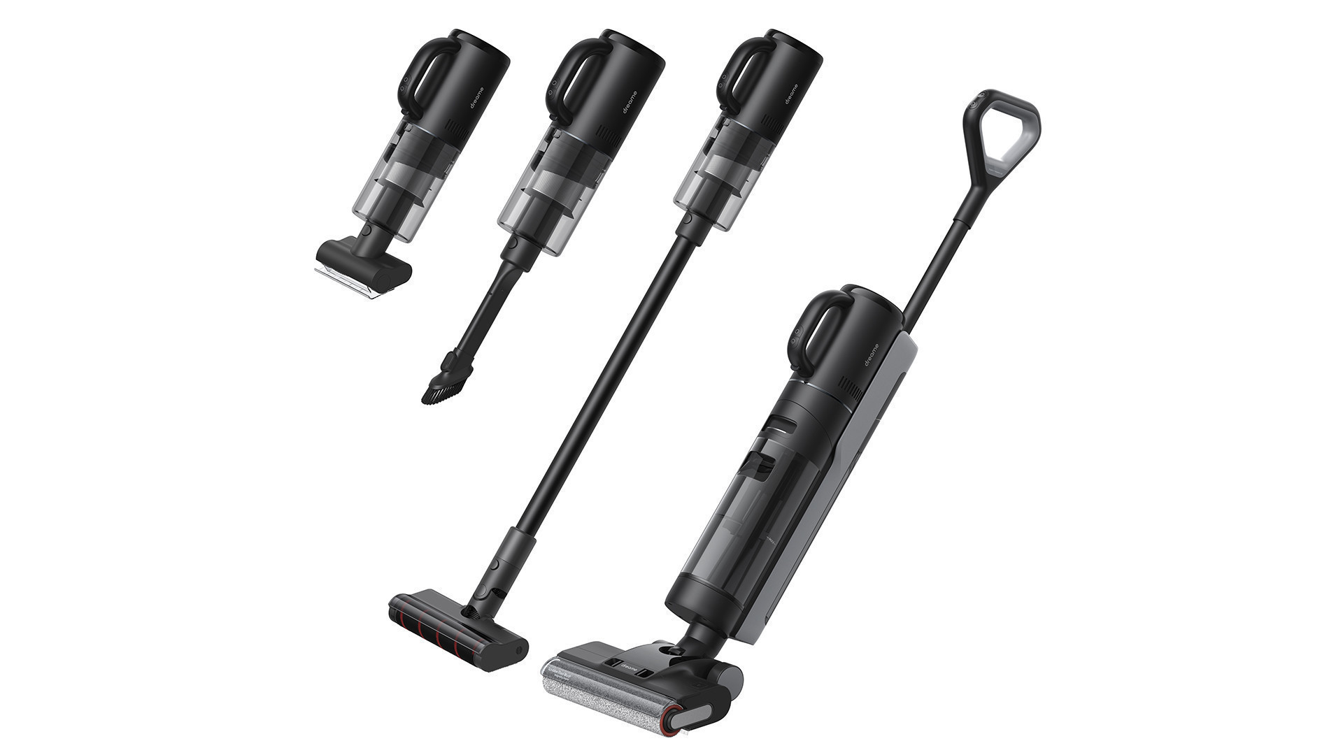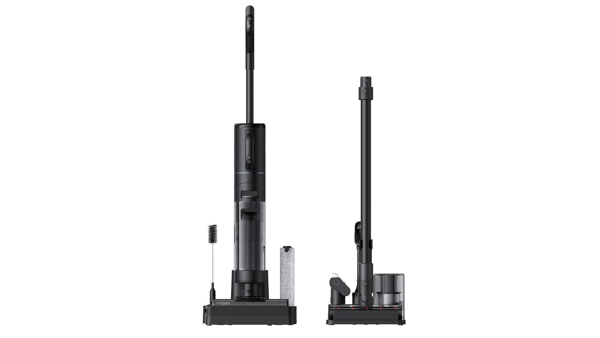 Начнем с одного из самых заметных преимуществ Dreame H12 Dual — его компактность. Беспроводной пылесос занимает минимум места в квартире, легко хранится в гардеробной или шкафу и весит всего 5 кг. В комплекте поставки имеется ручка и несколько насадок, подстраивающихся под различные виды уборки, что делает его универсальным помощником для сбора пыли, уборки полок с предметами, а также для влажной уборки.