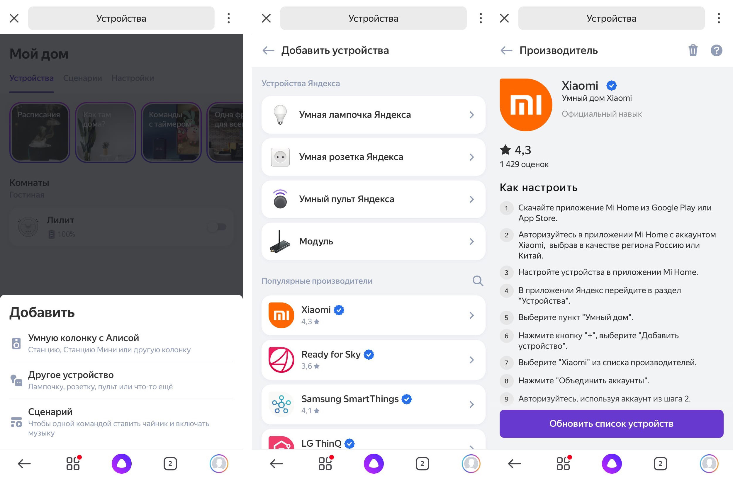 Взаимодействовать с Viomi SE нужно через специальное приложение. о котором мы упоминали выше. В нем можно просмотреть текущую карту и построенные маршруты, создать свои сценарии уборки, вызвать пылесос в конкретную точку для уборки, а также задавать различные таймеры и расписания. Пылесос может распознавать голосовые команды и работает с голосовым помощником Алисой. Для интеграции к Алисе необходимо подключить Viomi SE через приложение Mi Home, после этого зайти в приложение Яндекс и авторизоваться под своим логином Mi Home. После этого, все устройства, подключенные к Mi Home, подтянутся в Яндекс автоматически. Вуаля, теперь робот-пылесос можно запустить с помощью Алисы!
