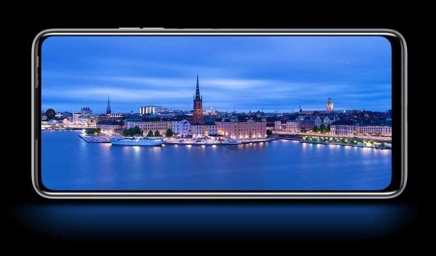 Внешне смартфон выглядит достаточно просто, но стильно. Вся лицевая панель черная и закрыта защитным стеклом Asahi glass. Практически все пространство занимает экран диагональю 6,9 дюймов с разрешением FHD+. Забегая вперед — матрица звезд с неба не хватает. Качества картинки более чем достаточно для просмотра видео или игр, но максимальная яркость не велика. Небольшой круглый вырез скрывает фронтальную камеру на 8Мп с двойной вспышкой.