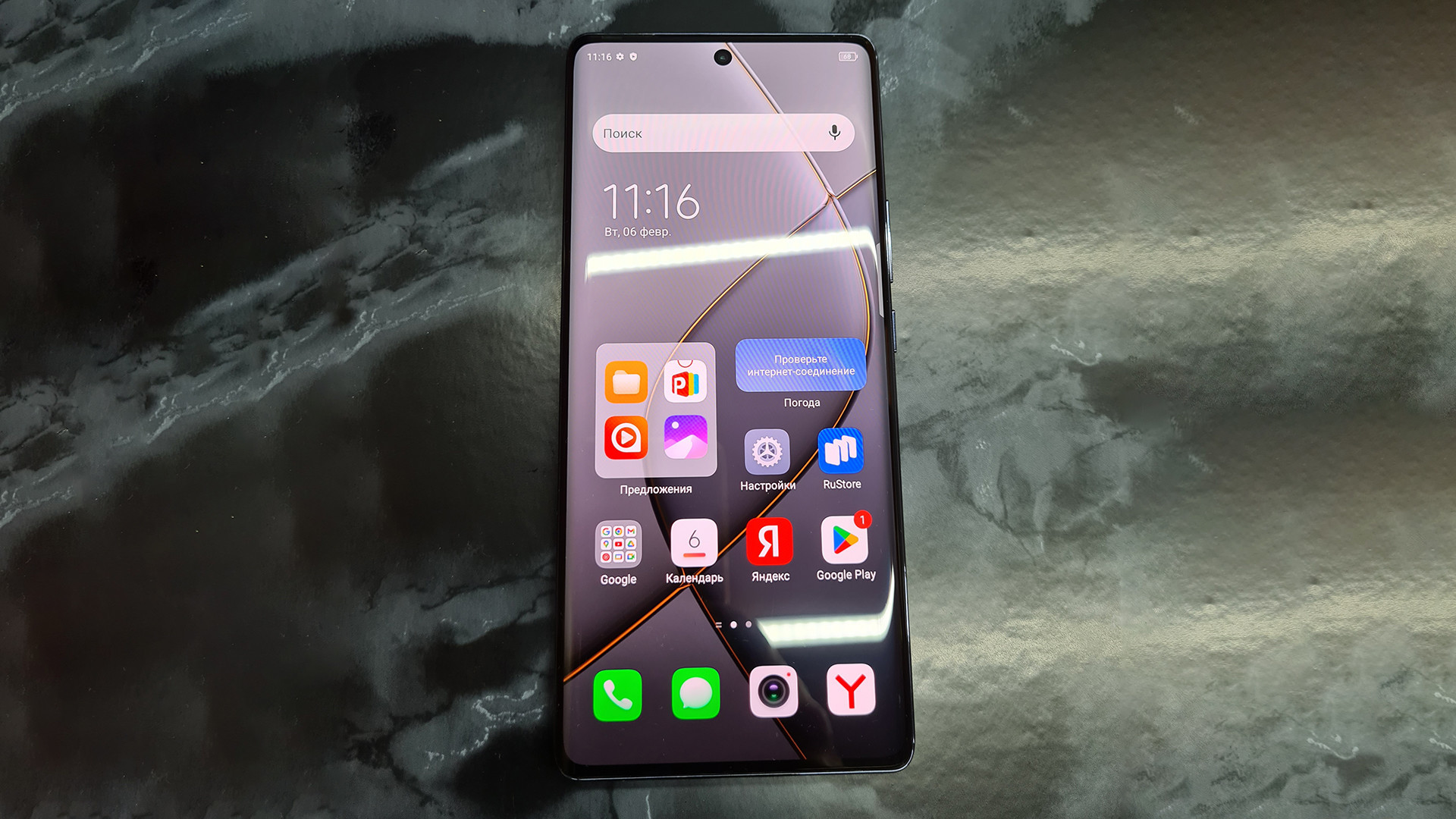 В качестве экрана – 6.8” изогнутый AMOLED-дисплей (для сравнения, в модели Pro стоит IPS) с высокой частотой обновления 120 Гц. Экран очень яркий (максимальные показатели – 1000 нит) и контрастный, взаимодействие плавное и четкое. Датчик отпечатка пальца встроен прямо в дисплей, срабатывает стабильно быстро. Для защиты экрана выбрали Corning Gorilla Glass 5.