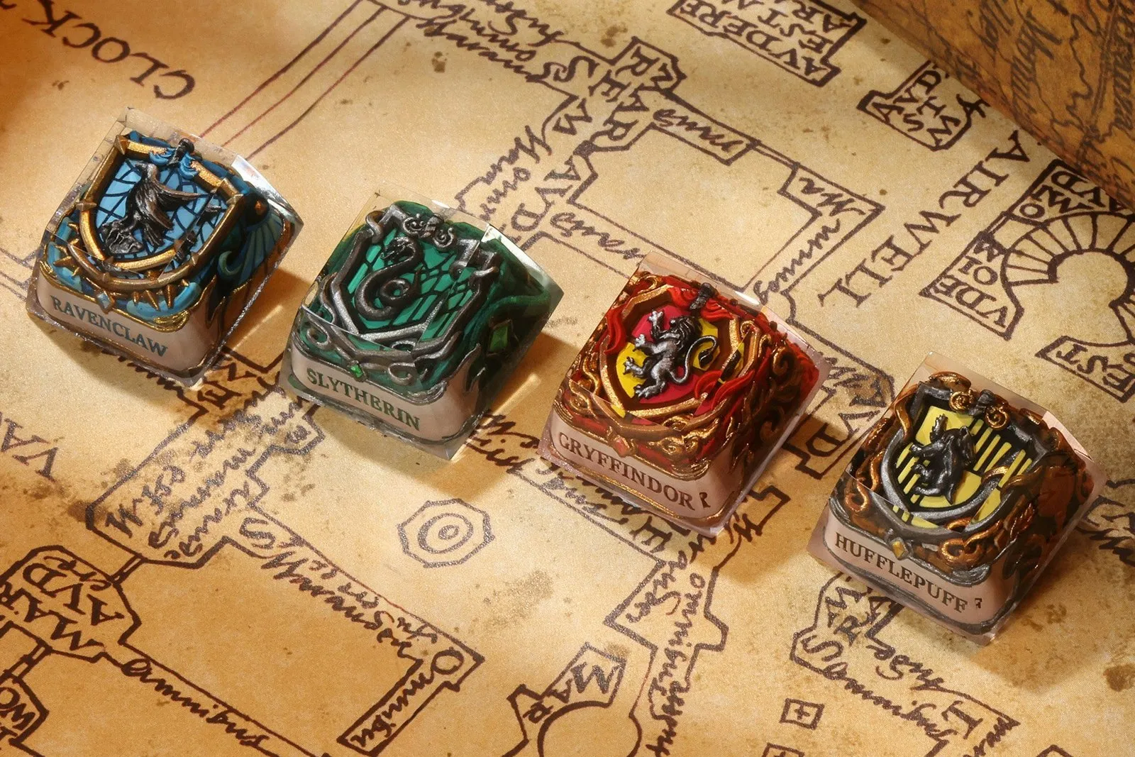 Для тех, кто хочет обновить существующую клавиатуру, Drop предлагает наборы кейкапов с символикой факультетов ($79) и эксклюзивные колпачки ручной работы ($69). Завершают коллекцию коврики с тематикой квиддича и гербами ($49) размером 90×40 см с водоотталкивающей пропиткой.