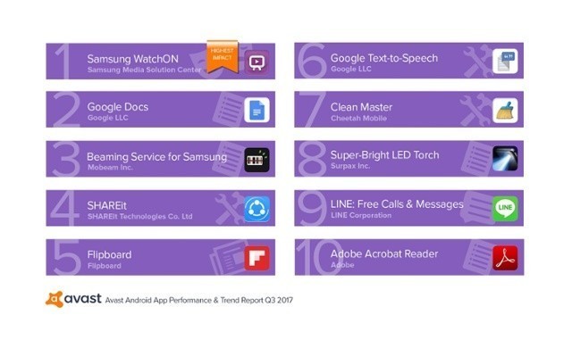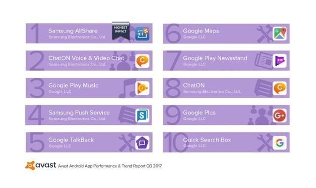 Американская компания Avast представила антирейтинг приложений на ОС Android с точки зрения расходования ими системных ресурсов.