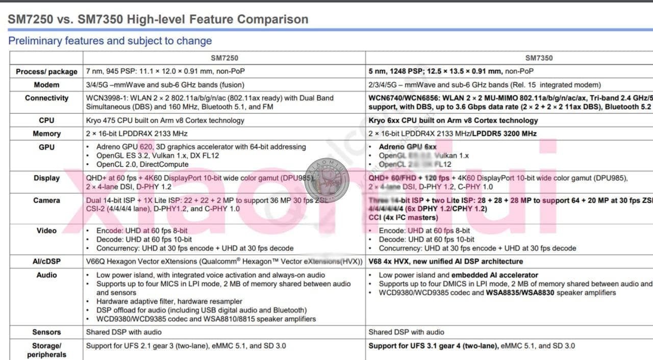 Информация исходит от Qualcomm, но ей поделился ведущий Telegram «XiaomiUI», который поделился подробностями о том, как появится линейка Snapdragon 775. Согласно распространенной информации, Qualcomm Snapdragon 775 будет поставляться в двух вариантах — 4G и 5G — с SoC, построенным на 5-нм техпроцессе.