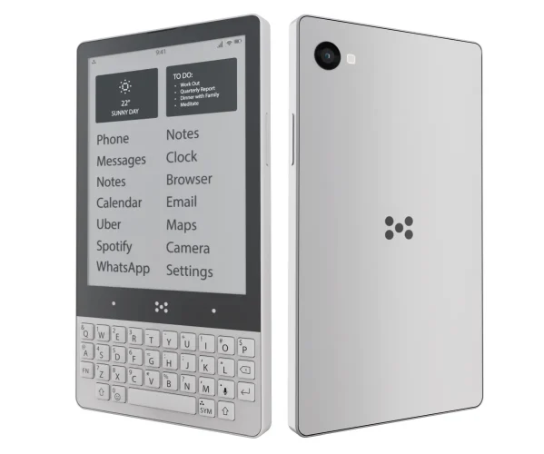 Minimal Phone — это современный телефон с ретро-уклоном, где вместо огромного цветного экрана установлен 4,3-дюймовый E Ink-дисплей. Такой экран удобен для чтения, отлично видно на солнце, а ещё он почти не расходует заряд, так что батареи на 3000 мАч хватит на несколько дней. Под дисплеем — классическая QWERTY-клавиатура с тактильной обратной связью, которая делает набор текста удобнее, чем на сенсорных клавиатурах.