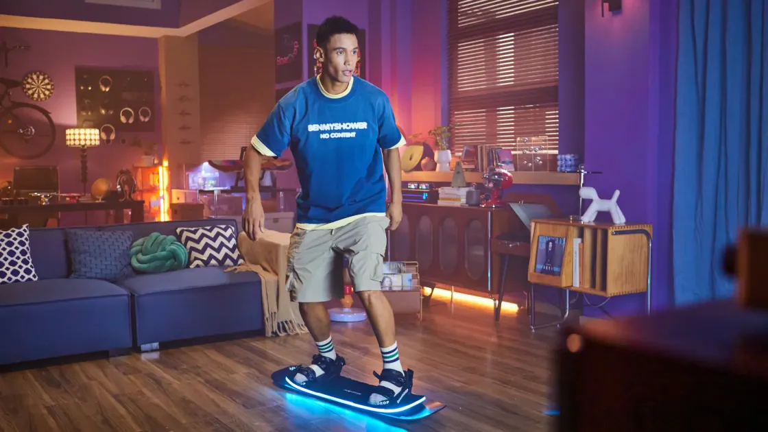 В основе системы лежит универсальная Core Board — многофункциональная платформа, которая превращается в сноуборд, скейтборд или балансировочную доску. Она изготовлена из прочных материалов — канадского клёна, стекловолокна и нескользящей пены EVA. Внутри спрятана электроника: микропроцессор, модуль Bluetooth, инерциальный измерительный блок (IMU), двигатели тактильной обратной связи и аккумулятор, который обеспечивает до 10 часов работы на одном заряде. А для дополнительной атмосферы по периметру доски сияет синяя светодиодная подсветка.