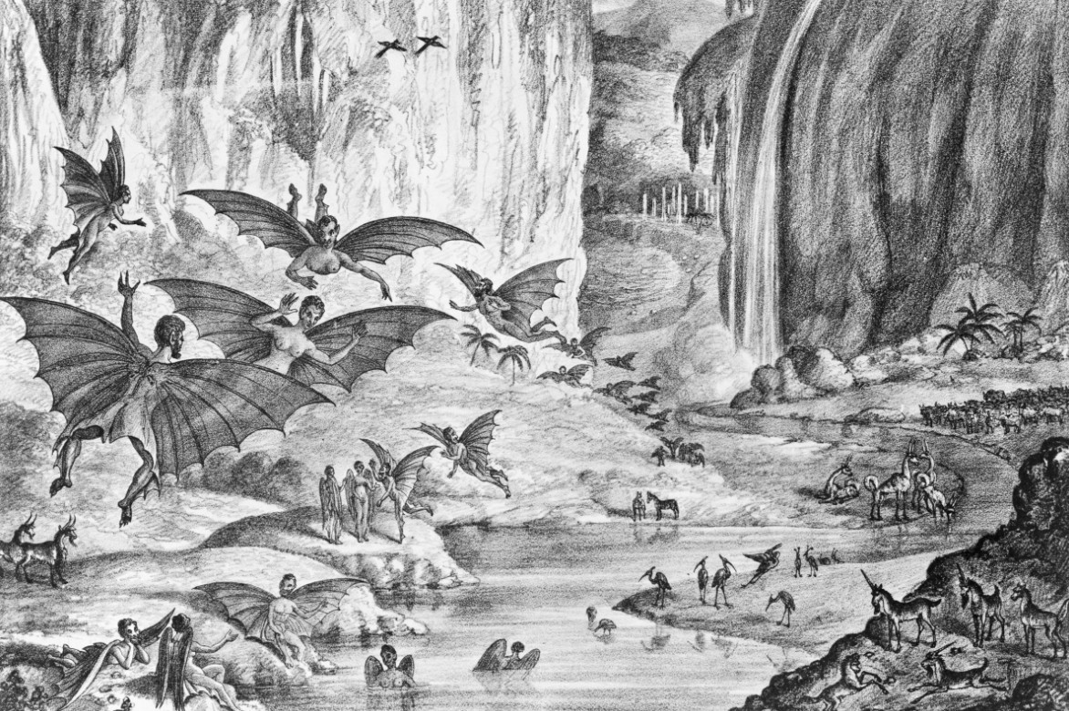 В августе 1835 года самая читаемая (на тот момент) газета в мире сообщила, что на Луне живут человеко-летучие мыши. New York Sun рассказывала о гуманоидах с крыльями летучей мыши и медными волосами, которые были четырех футов (чуть больше 120 см) ростом, очень умны и жили в пирамидах.