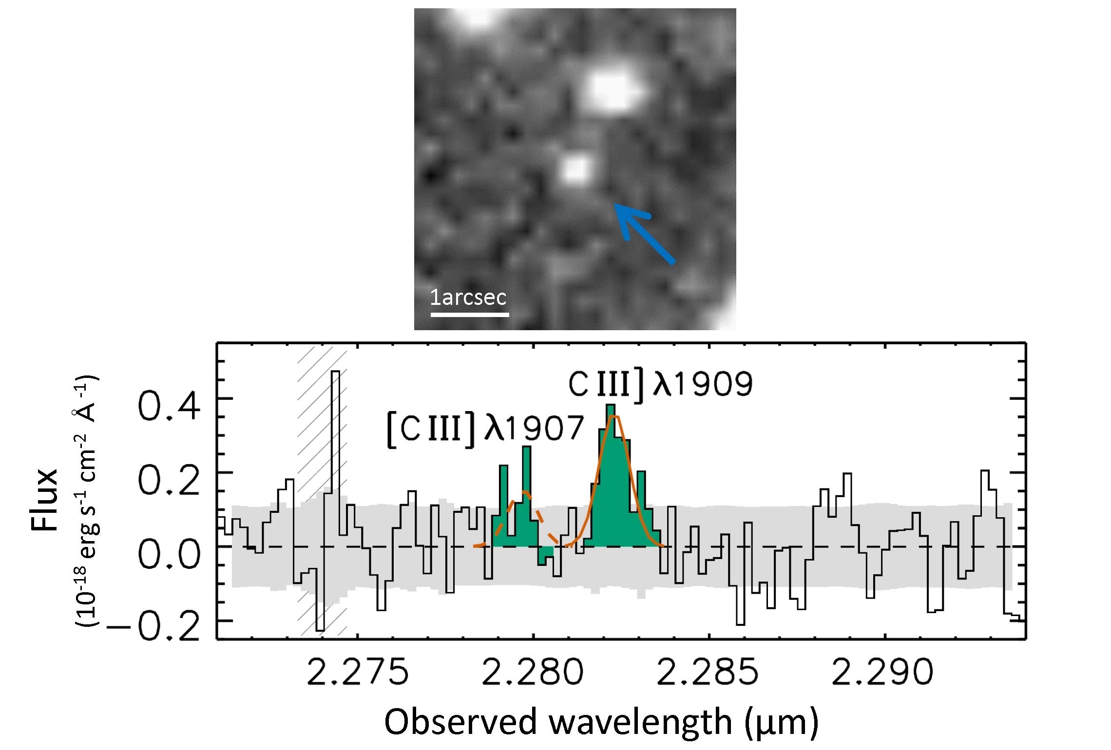 Ученые специально рассмотрели ультрафиолетовый свет, поскольку это область электромагнитного спектра, в которой мы ожидали обнаружить химические сигнатуры с красным смещением. Космический телескоп Hubble несколько раз обнаружил сигнатуру в спектре GN-z11. Однако даже Hubble не может считать линии ультрафиолетового излучения в той степени, в которой исследователи нуждались. Поэтому было принято решение обратиться к более современному наземному спектрографу, инструменту для измерения эмиссионных линий, названному MOSFIRE, который установлен на телескопе Keck I на Гавайях.