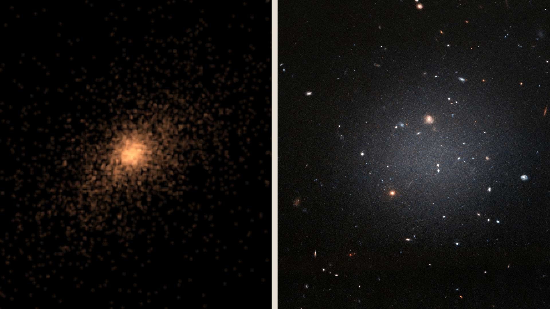 Как следует из названия, ультрадиффузные галактики, или UDG, представляют собой карликовые галактики, звезды которых разбросаны по обширной области, что приводит к чрезвычайно низкой поверхностной яркости, что делает их очень трудными для обнаружения. Несколько вопросов о UDG остаются без ответа: как эти карлики оказались такими разросшимися? Являются ли их ореолы из темной материи — ореолы невидимой материи, окружающие галактики — особенными?