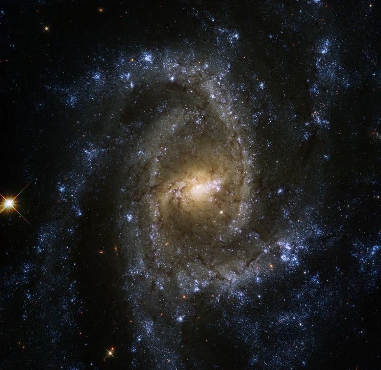 Скручивающие узоры, создаваемые множеством спиральных рукавов NGC 2835, создают иллюзию глаза. Это подходящее описание, поскольку эта великолепная галактика находится недалеко от головы южного созвездия Гидры, водной змеи. Эта потрясающая спиральная галактика с перемычкой, ширина которой чуть больше половины Млечного Пути, ярко представлена на этом изображении, сделанном космическим телескопом Хаббл. Известно, что в самом центре NGC 2835 находится сверхмассивная черная дыра с массой, в миллионы раз превышающей вес нашего Солнца, хотя ее нельзя увидеть на представленной фотографии.