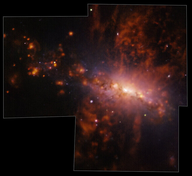 В результате процесса звездообразования из галактики было выброшено большое количество различных элементов, включая водород, кислород, азот и серу. По оценкам ученых, общая масса выброшенного газа составляет 50 миллионов солнечных масс, что является весьма значительной цифрой.