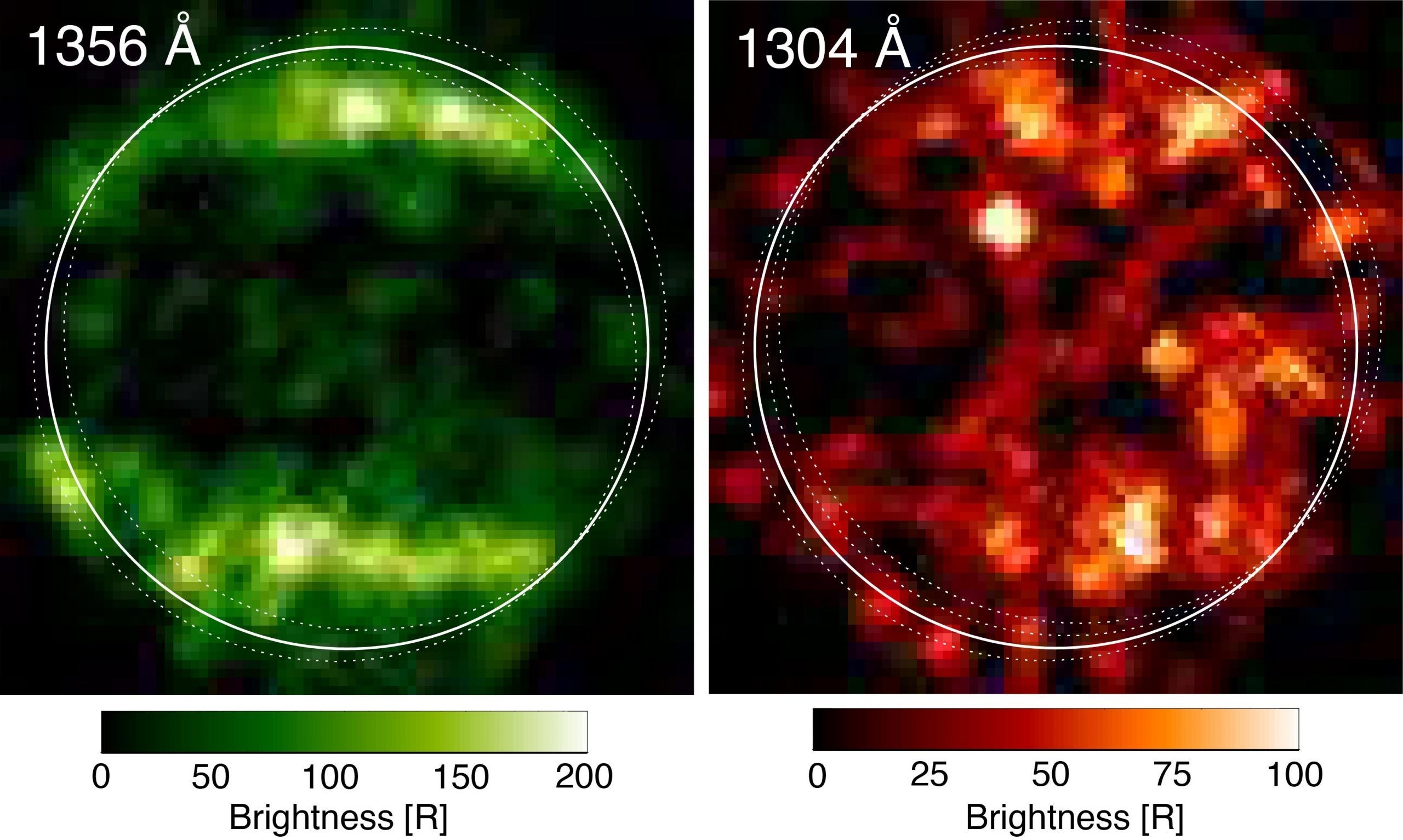 Спустя время команда нашла объяснение в относительном распределении полярных сияний на двух изображениях. Температура поверхности Ганимеда сильно меняется в течение дня, и около полудня около экватора может стать достаточно теплым, чтобы ледяная поверхность высвободила небольшое количество молекул воды. Фактически, воспринимаемые различия между ультрафиолетовыми изображениями напрямую коррелируют с тем, где в атмосфере Луны можно ожидать воду.