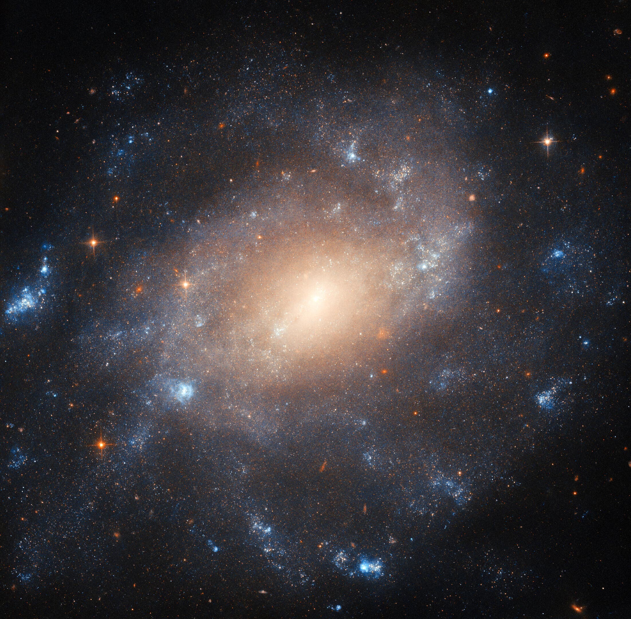 На этой неделе Hubble сделал снимок спиральной галактики ESO 422-41, находящейся примерно в 34 миллионах световых лет от Земли в созвездии Колумба. С помощью улучшенной камеры для обзоров Hubble были запечатлены детали пятнистой структуры спиральных рукавов галактики и свечение ее плотного ядра. Название ESO 422-41 происходит от обозначения в Атласе южного неба Европейской южной обсерватории (B).