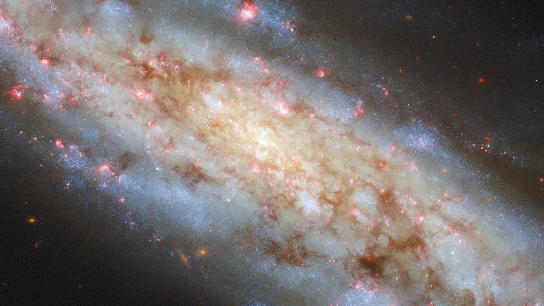 Этот снимок — часть масштабного исследования звёздных яслей в соседних галактиках. Хаббл изучает NGC 3511 через пять специальных фильтров, каждый из которых раскрывает новые детали. Особый интерес представляет красный фильтр, выявляющий гигантские облака водорода, подсвеченные ультрафиолетом новорождённых звёзд.