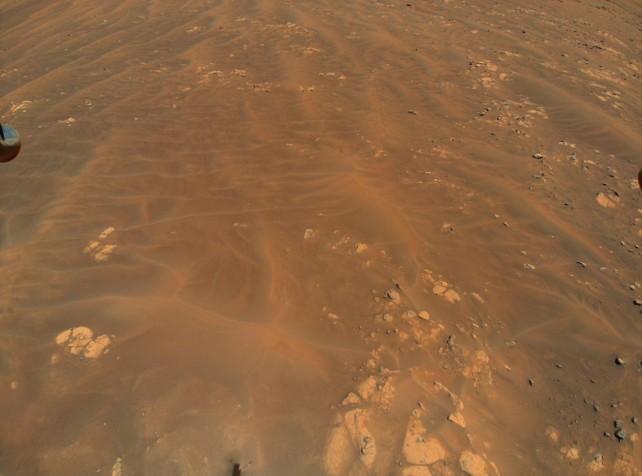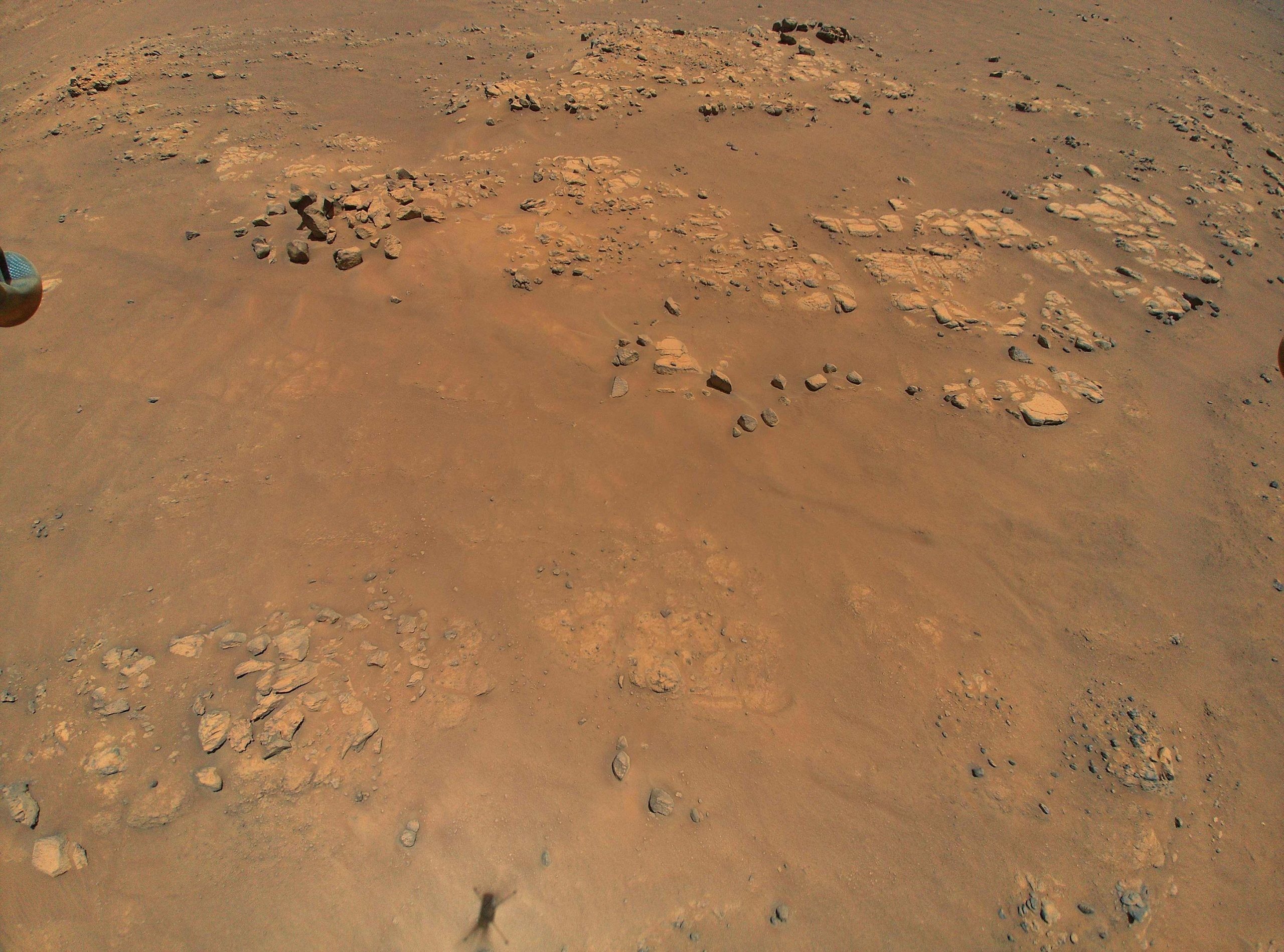 Цветные изображения от Ingenuity, сделанные с высоты около 10 метров, предоставляют команде марсохода гораздо больше деталей, чем они получают из изображений орбитального аппарата (например, приведенном выше), которые обычно используются для планирования маршрута. В то время как камера, такая как HiRISE на борту Марсианского разведывательного орбитального аппарата NASA, помогает различить камни диаметром около 1 метр, миссии обычно полагаются на изображения марсохода, чтобы увидеть более мелкие камни или особенности местности.