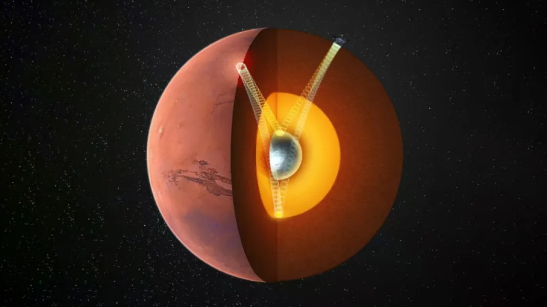 Состав ядра Марса оказался сложнее, чем предполагалось ранее. Кристаллические соединения железа и никеля дополнены значительным количеством более легких элементов: серы (12-16%), кислорода (6,7-9%) и углерода (до 3,8%). Интересно, что несмотря на разницу в размерах планет, относительные пропорции их ядер удивительно похожи — твердая часть занимает примерно пятую часть радиуса как у Земли, так и у Марса.