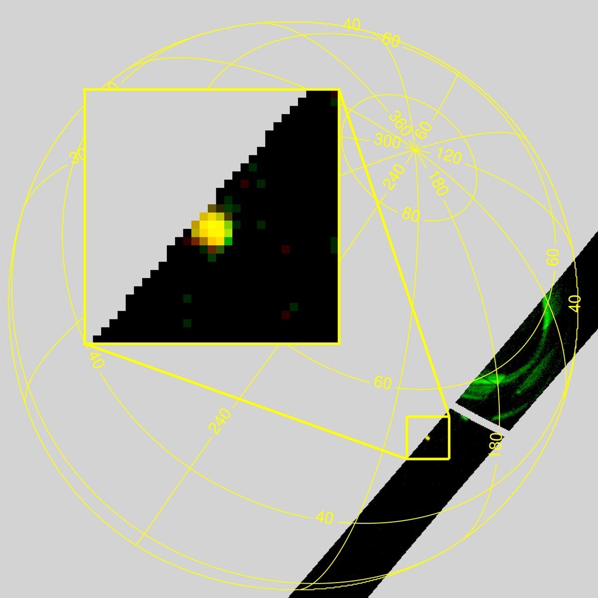 С борта космического корабля Juno инструмент под руководством Юго-Западного научно-исследовательского института для наблюдения за полярными сияниями по счастливой случайности заметил яркую вспышку над облаками Юпитера прошлой весной. Команда ультрафиолетового спектрографа (UVS) изучила данные и определила, что они захватили болид, чрезвычайно яркий взрыв метеороида в верхних слоях атмосферы газового гиганта.