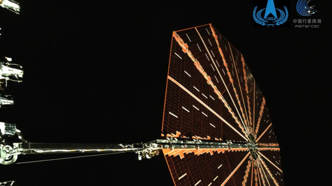 Китайский космический зонд «Тяньвэнь-2» сделал эффектное селфи на пути к астероиду Камо’оалева. На фото видна одна из солнечных панелей — она раскрылась идеально, что подтверждает: аппарат готов к выполнению своей исторической миссии.