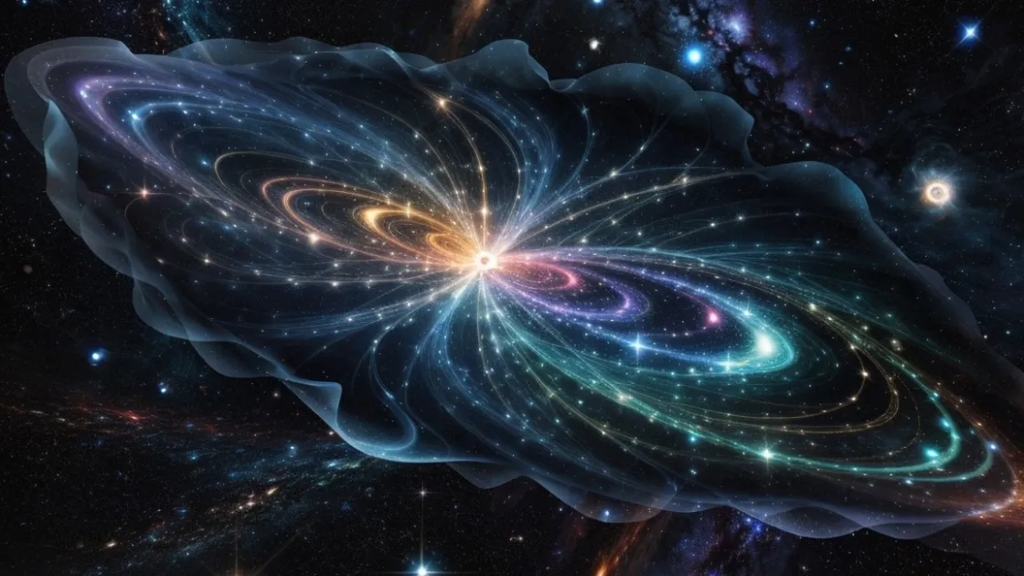 Галактики не разбросаны случайным образом по Вселенной. Они собираются не только в скопления, но и в обширные взаимосвязанные нитевидные структуры с гигантскими бесплодными пустотами между ними. Эта «космическая паутина» вначале была тонкой, но со временем стала более отчетливой, поскольку гравитация стягивала материю.