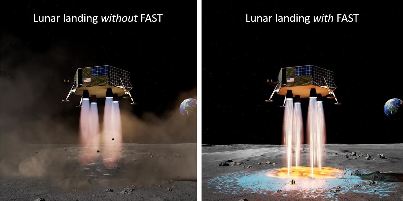 Технология, разработанная Masten, является гениальным решением обеих этих проблем. Установка посадочной площадки во время спуска позволит космонавтам иметь площадку на месте до того, как космический корабль когда-либо коснется поверхности. Установка также будет стоить намного дешевле, так как все, что нужно, — это относительно простая добавка к выхлопу ракеты, которая и так выбрасывается на поверхность.