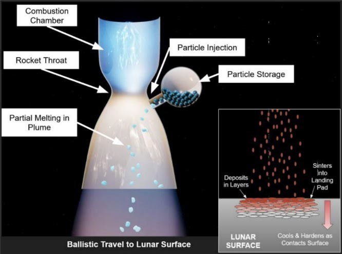 Общая идея Masten достаточно проста для понимания. Добавление твердых гранул в выхлоп ракеты позволит этому материалу частично разжижиться и отложиться в зоне продувки выхлопных газов, потенциально затвердевая до такой степени, что пыль больше не играет роли, поскольку она заключена в твердую внешнюю оболочку. Специалисты из Masten предполагали, что смогут найти подходящий материал для добавления в выхлоп ракеты, чтобы достичь нужного эффекта.